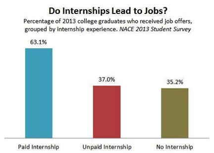 The hiring rate for college graduates who completed an unpaid internship was 37 percent, according to a National Association for Colleges and Employers survey in May 2013.