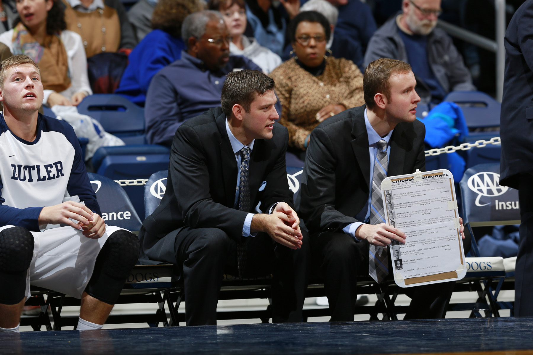Brandon Crone, a 2007 Butler alumnus, was named director of basketball operations in mid-October. Crone replaced T.J. Saint, who left in July to become a video editor for the Detroit Pistons.2014, sports, athletics, mens, Hinkle, Chicago, exhibition, home