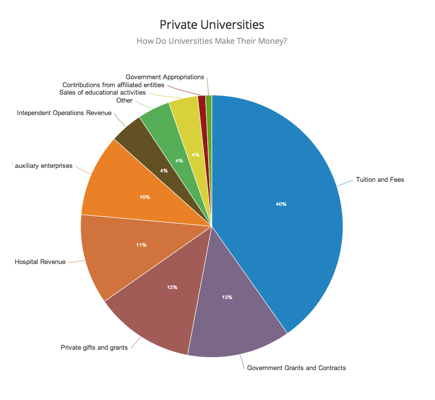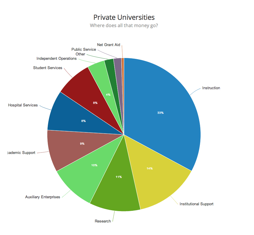 33 percent of spending goes towards instructional programs at private universities, according to Radio Open Source’s website.