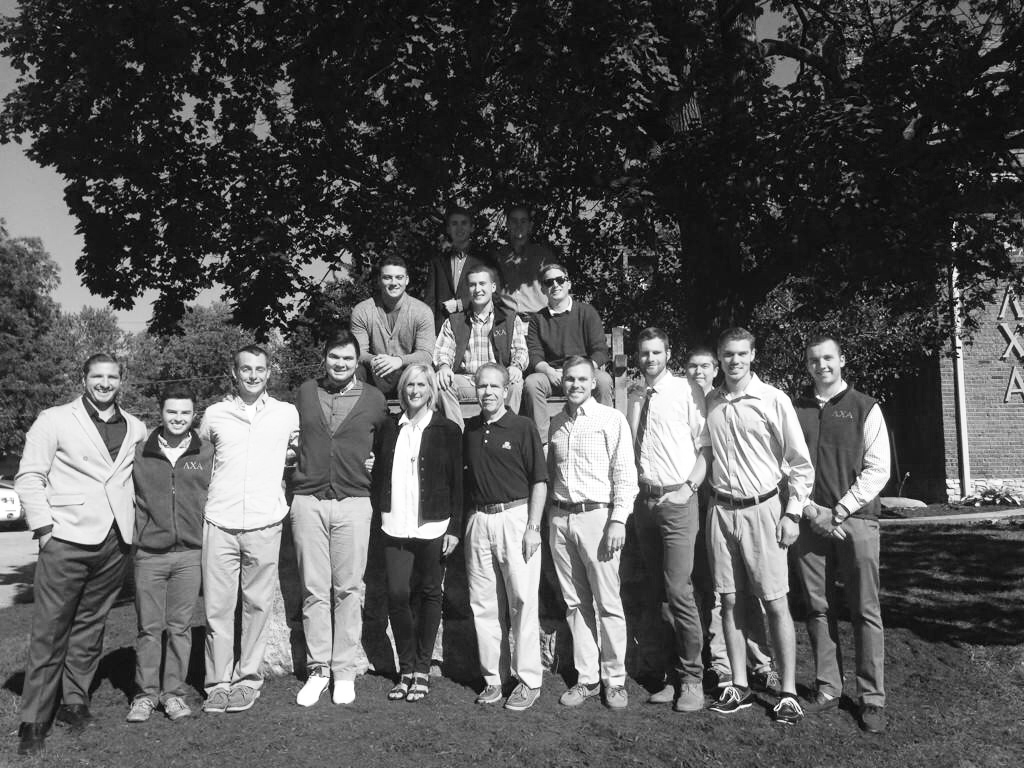 The members of Lambda Chi Alpha greet White joyfully and converse casually about their days and plans for the upcoming evening.