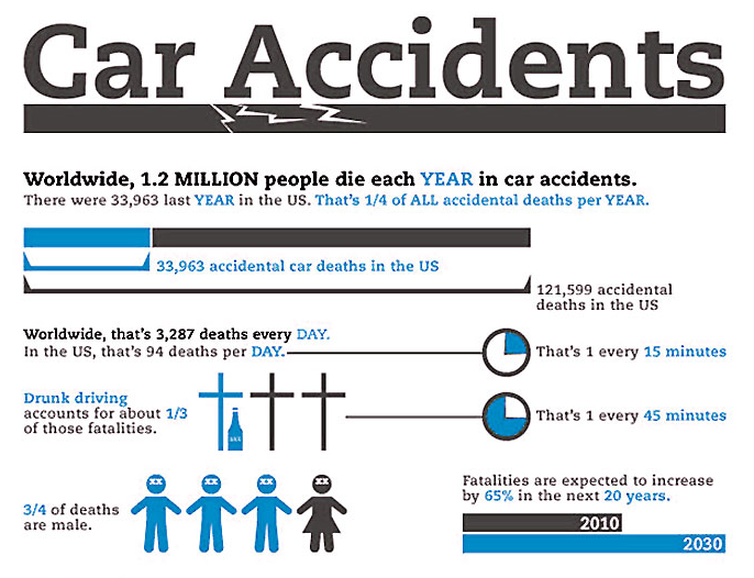 More than 37,000 people in the United States die in road crashes each year, according to the Association for Safe International Road Travel, which amounts to an average of more than 100 deaths a day. Road crashes are the leading cause of death worldwide among young people ages 15 to 29.