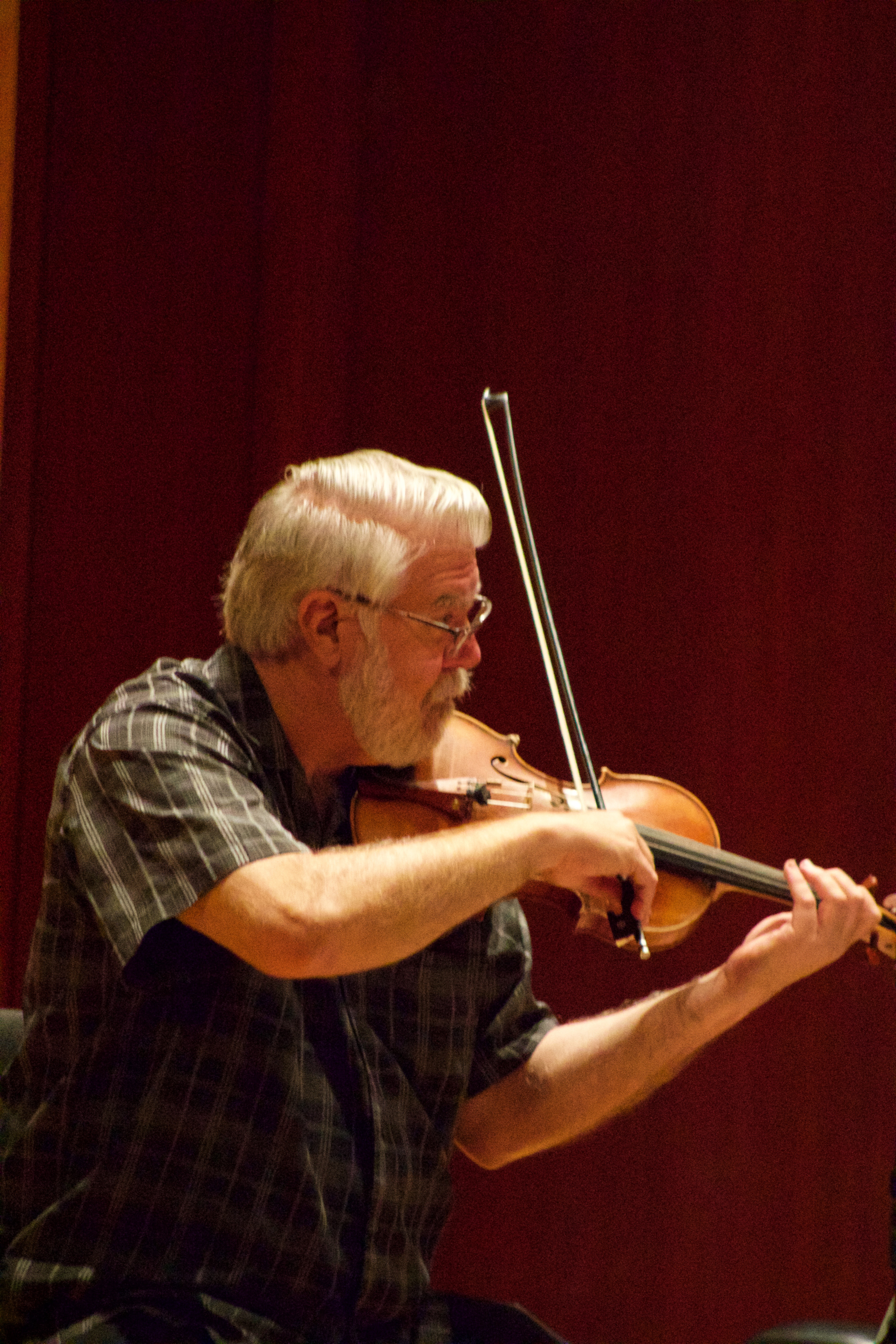 Dan Rizner plays the violin as Catherine Bringerud plays the piano. The duo performed at the Faculty Chamber Music concert in the Eidson-Duckwell Recital Hall on Tuesday, September 15. Photos by Jimmy Lafakis