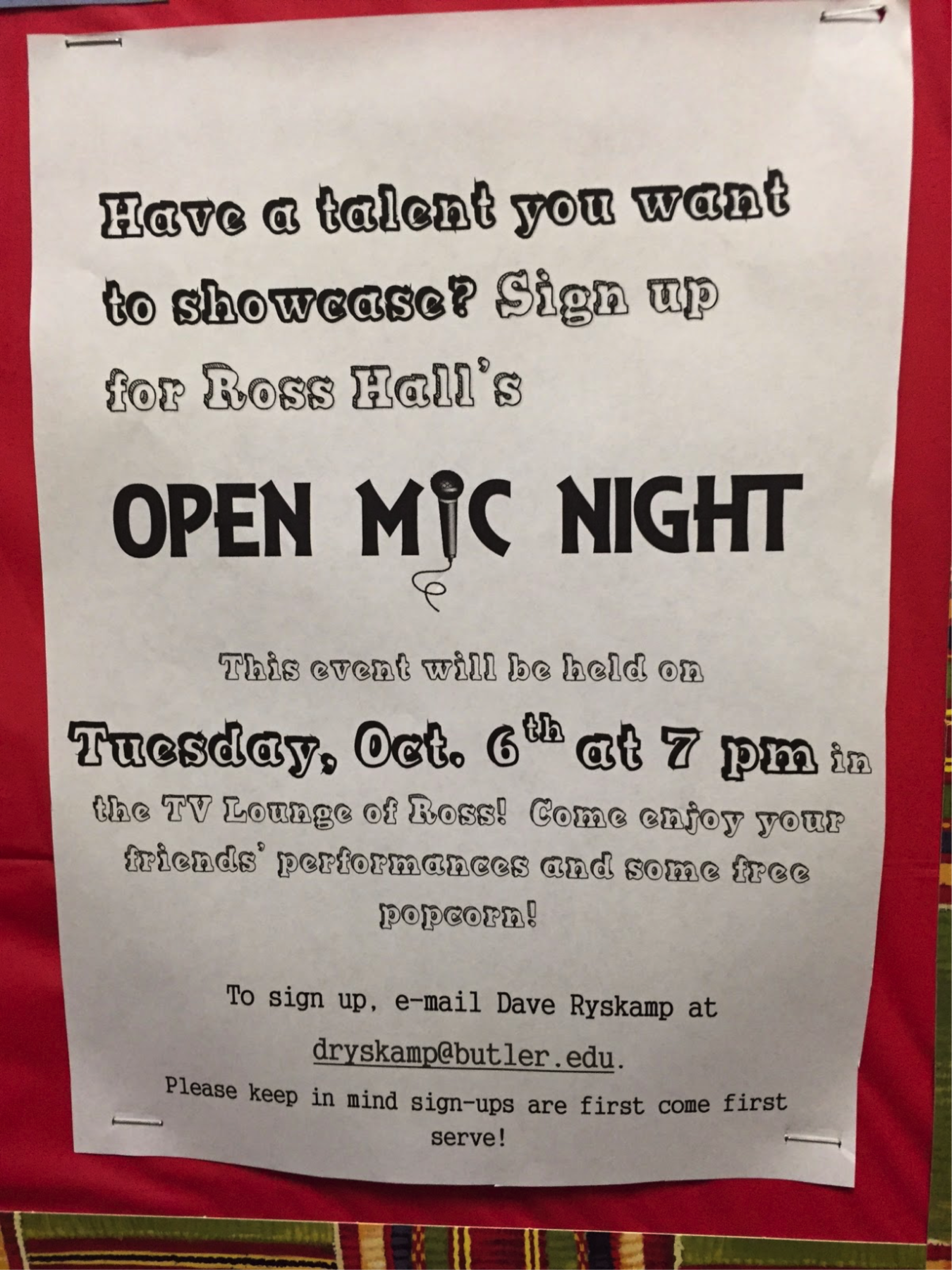 Ross’ government, led by president and freshman biology major David Ryskamp, is planning its first event, an open mic night in the TV room in Ross’s basement Oct. 6 at 7 p.m. Ryskamp said the night will be an opportunity for performers to “show their stuff.”