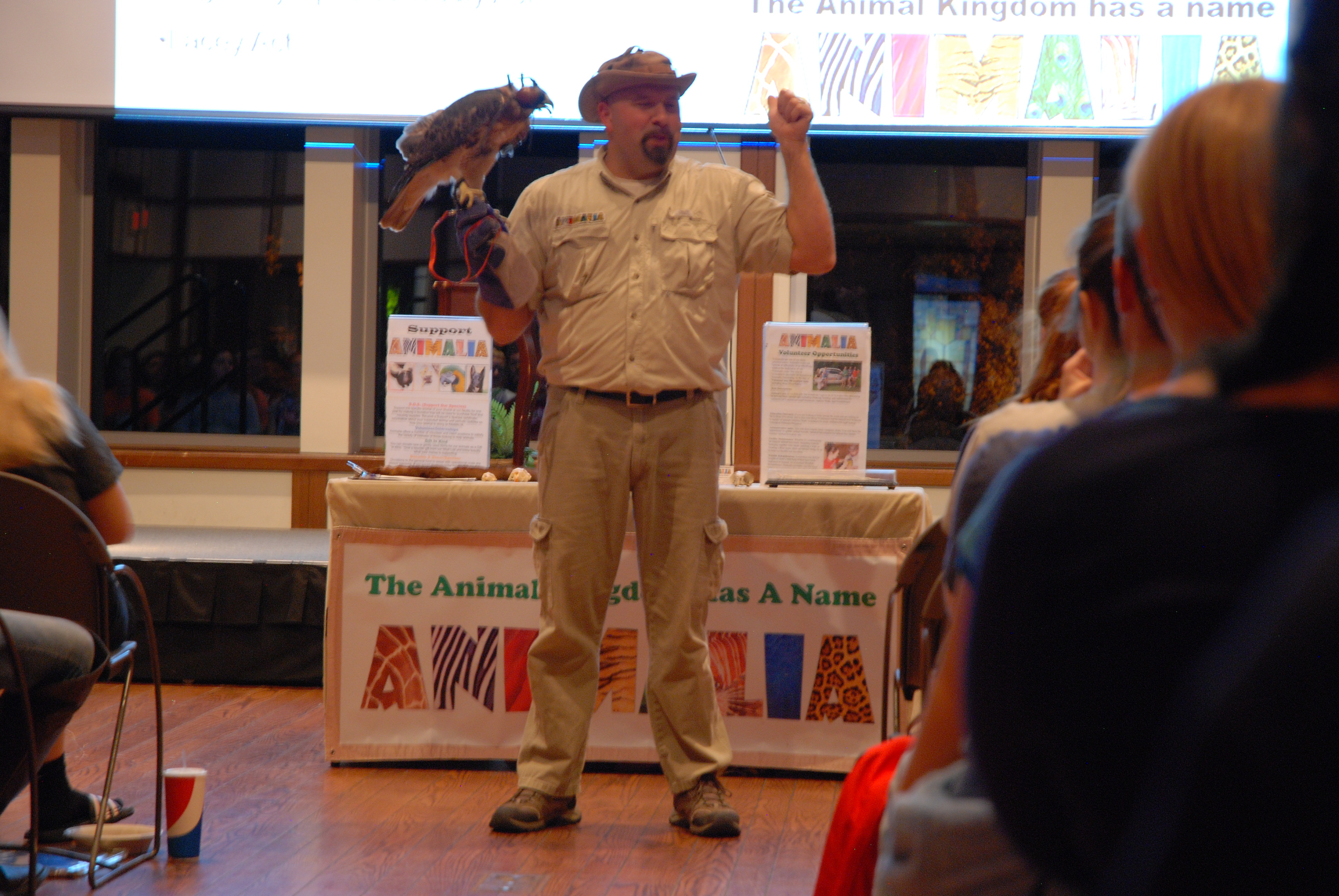 The man holding the hawk, Joel Vanderbush, was the founder of Animalia. Animalia started in 2005 as a consultation company to build outreach, volunteer and animal training programs at zoos across the country.