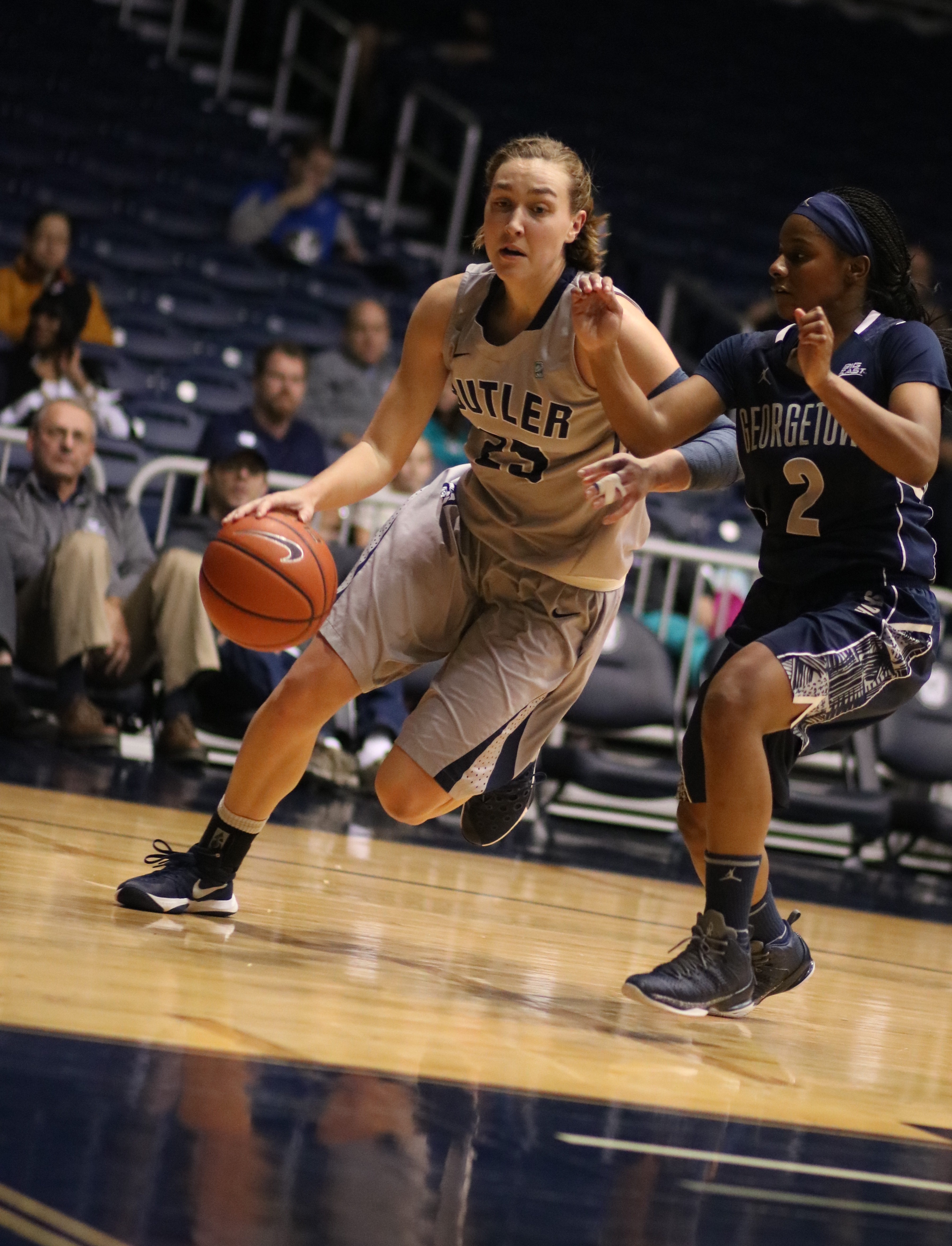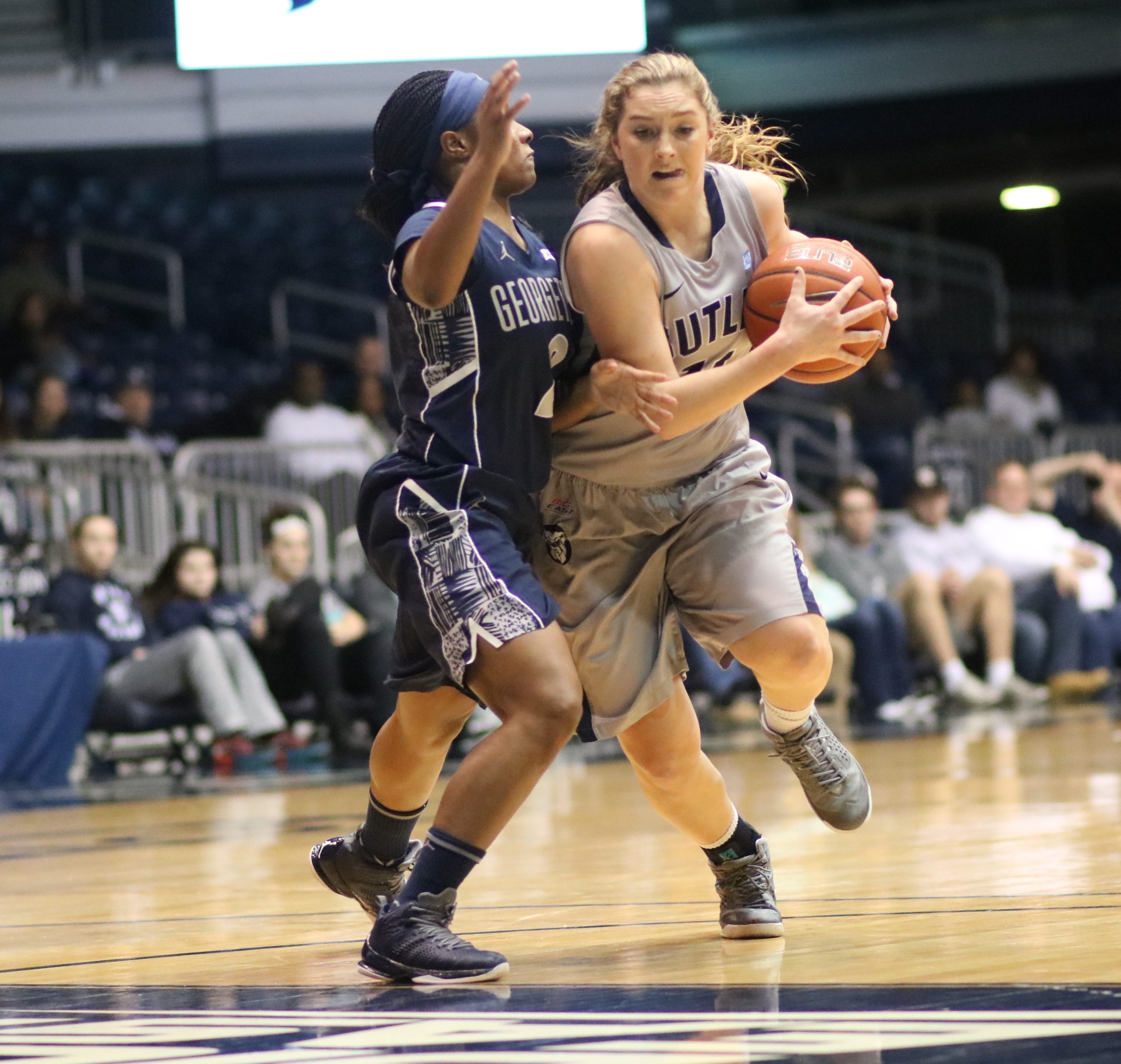 The Butler Bulldogs snatched their first Big East victory on Thursday night, defeating Georgetown 82-76. Senior Belle Obert pioneered the offensive attack, posting a team-high 19 points. Obert shot 8-11 from the field, grabbed seven rebounds, and blocked three shots in the win.