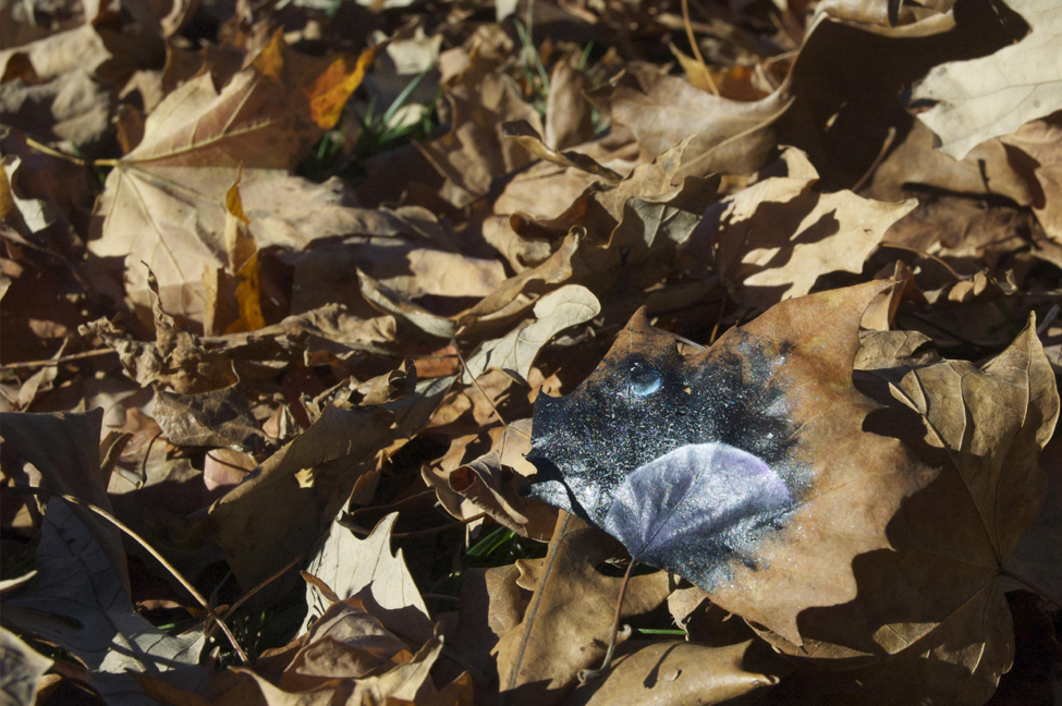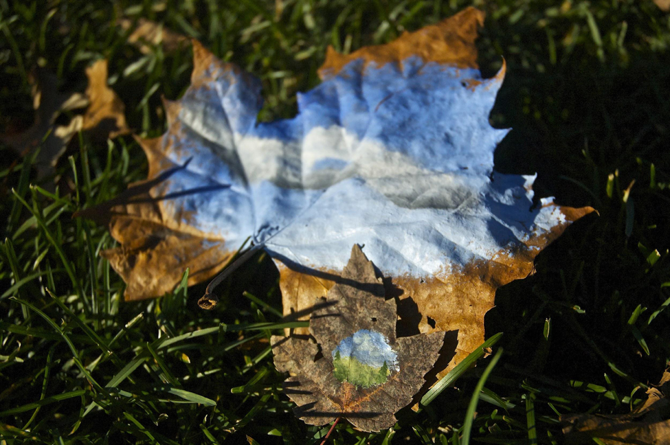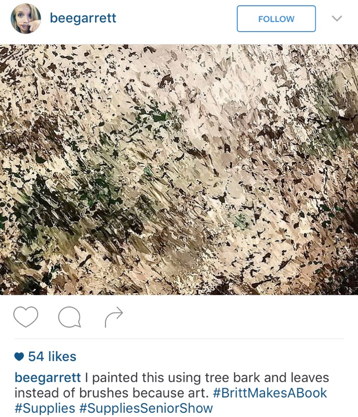 Garrett also likes to experiment with different textural elements. She started painting leaves at first and then began using leaves as brushes and tree bark as a canvas.
