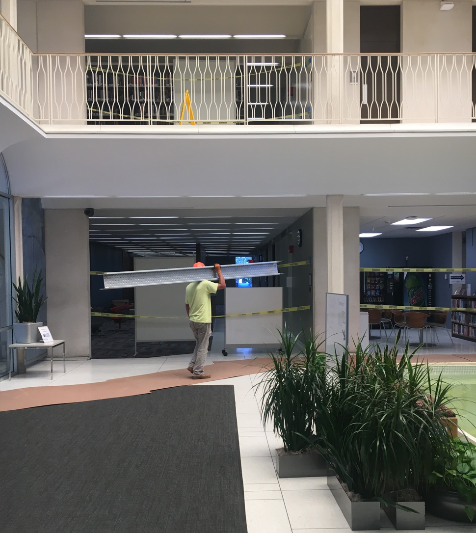 The lobby of the library has been under construction since last Thursday.