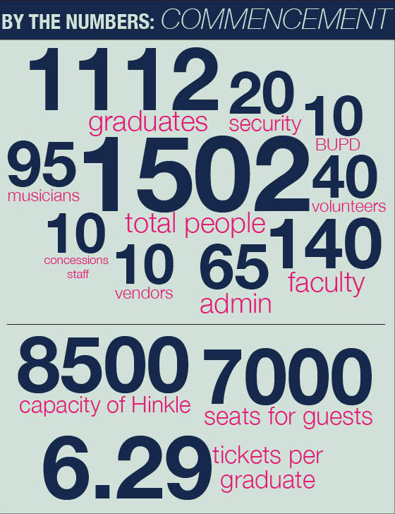 Hinkle’s capacity for the commencement ceremony is 8,500 seats total. Minus the aforementioned people, there are 7,000 seats left for graduates’ guests.
