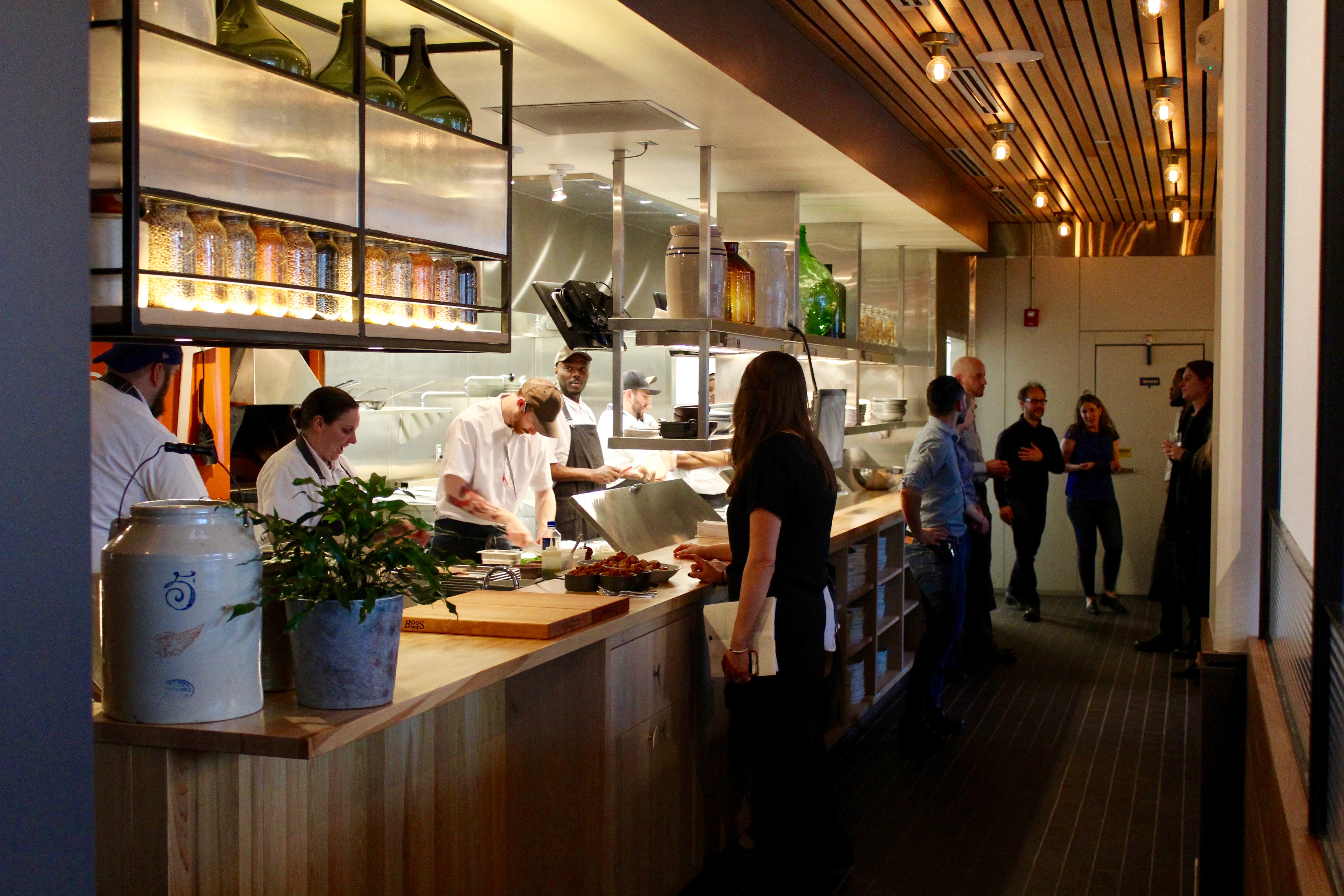 The food at the event, including vegetable samosas, chicken sandwiches and appetizer strip steak skewers from Fischer Farms, provided just a taste of what the restaurant’s full lunch and dinner menus will offer. The menus will include both small and large plate options, ranging from a $10 “Little Gem” salad with avocado and spiced pecans, to a $38 Fischer Farms steak with bernaise sauce.