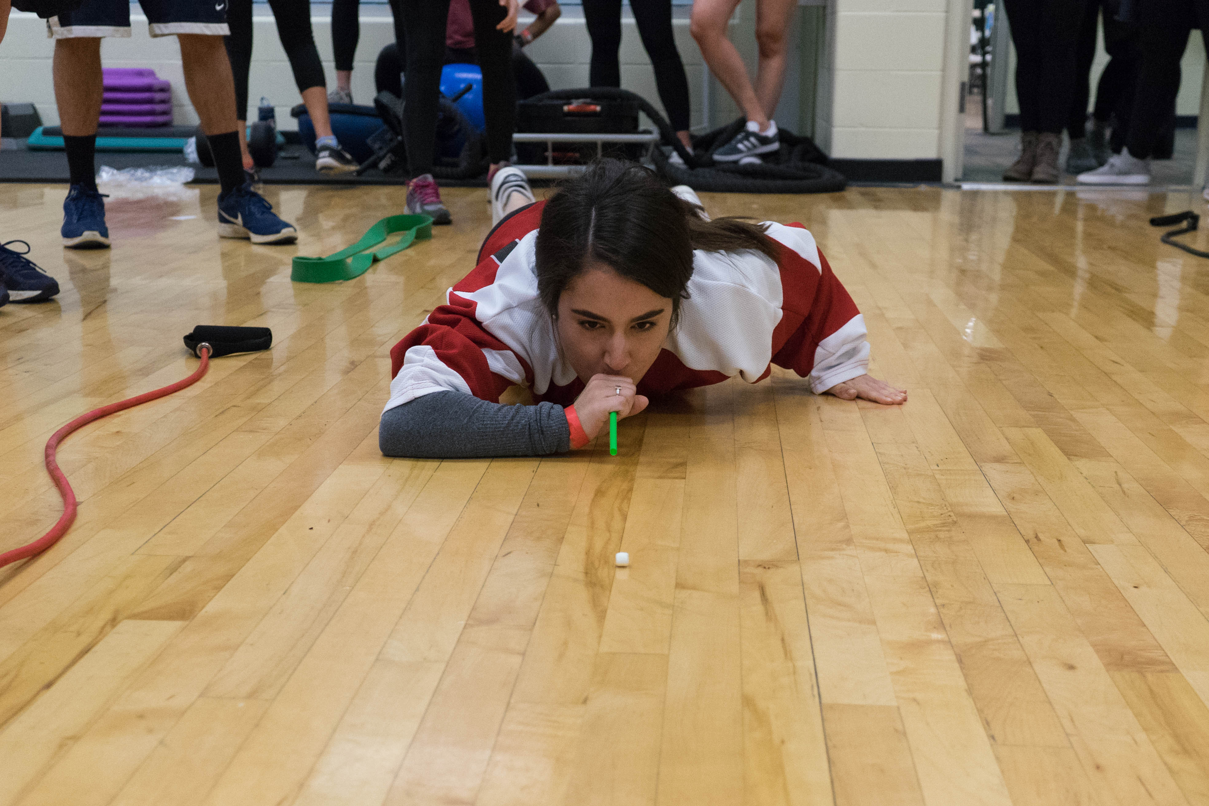 Kerry Cron blowing a marshmallow