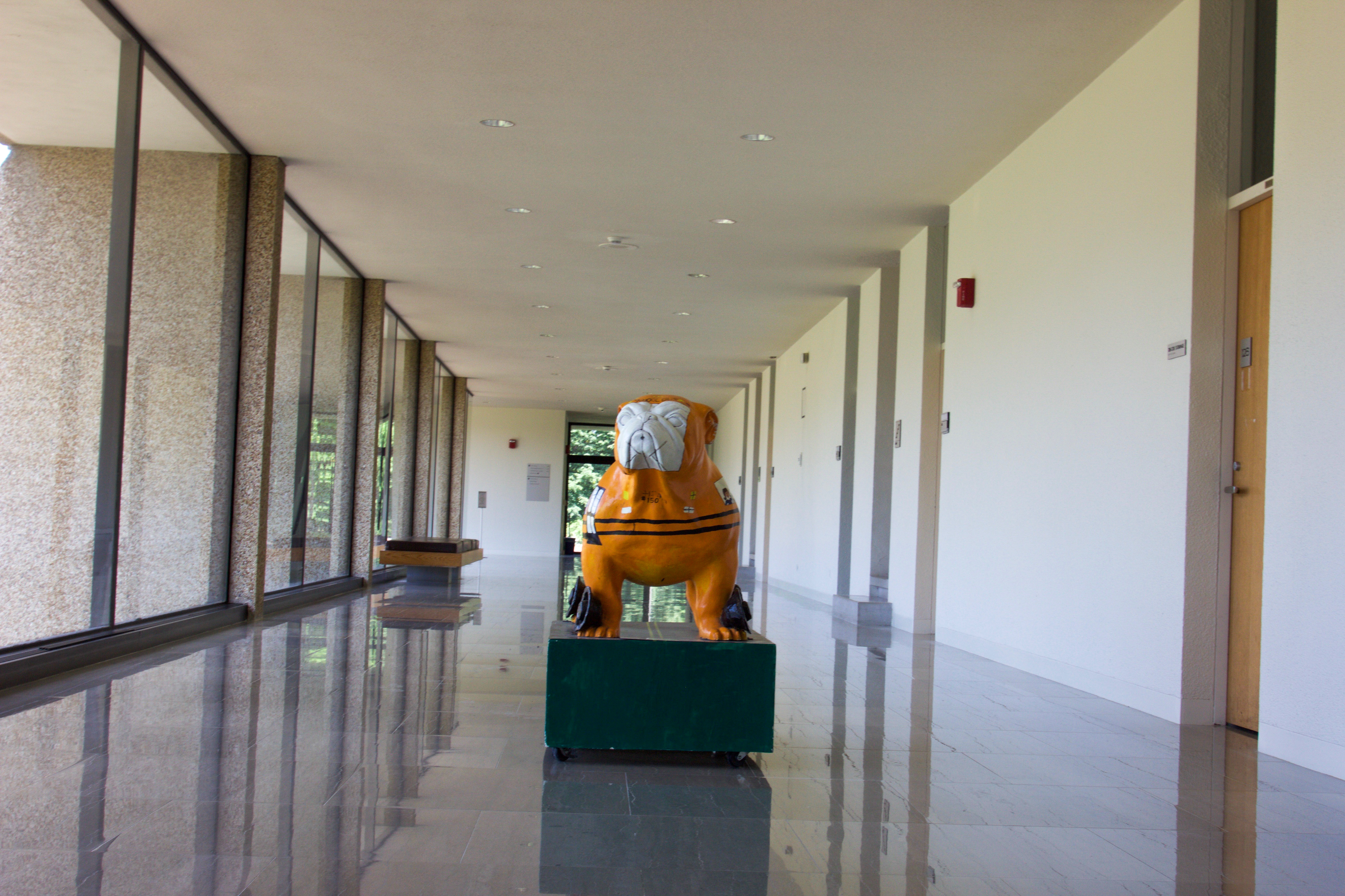 The College of Education bulldog that was moved from Jordan Hall to Christian Theological Seminary. Photo by Henry Weinberg.