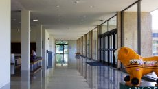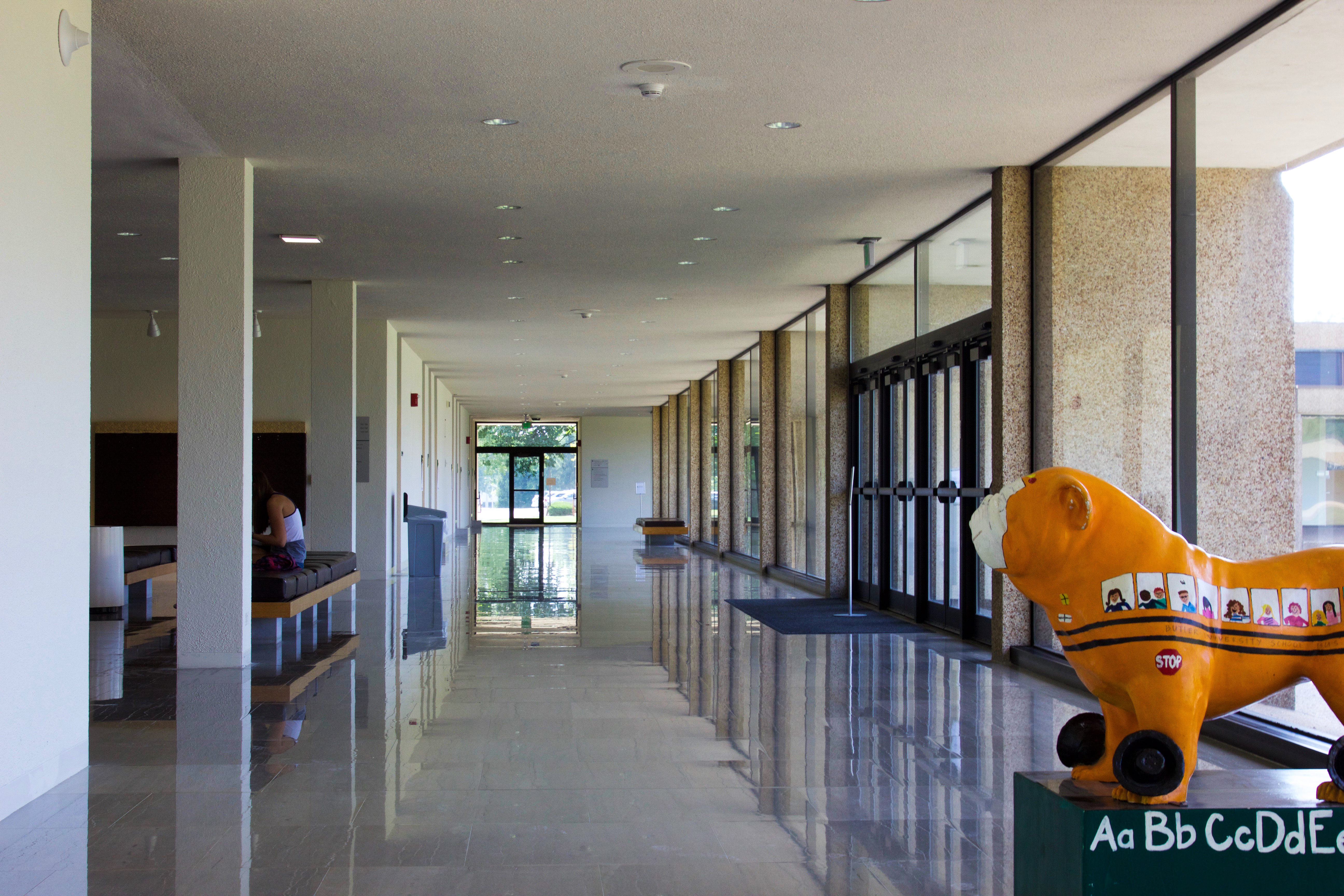 The College of Education Bulldog lingers in an empty hall inside Christian Theological Seminary. Photo by Henry Weinberg.