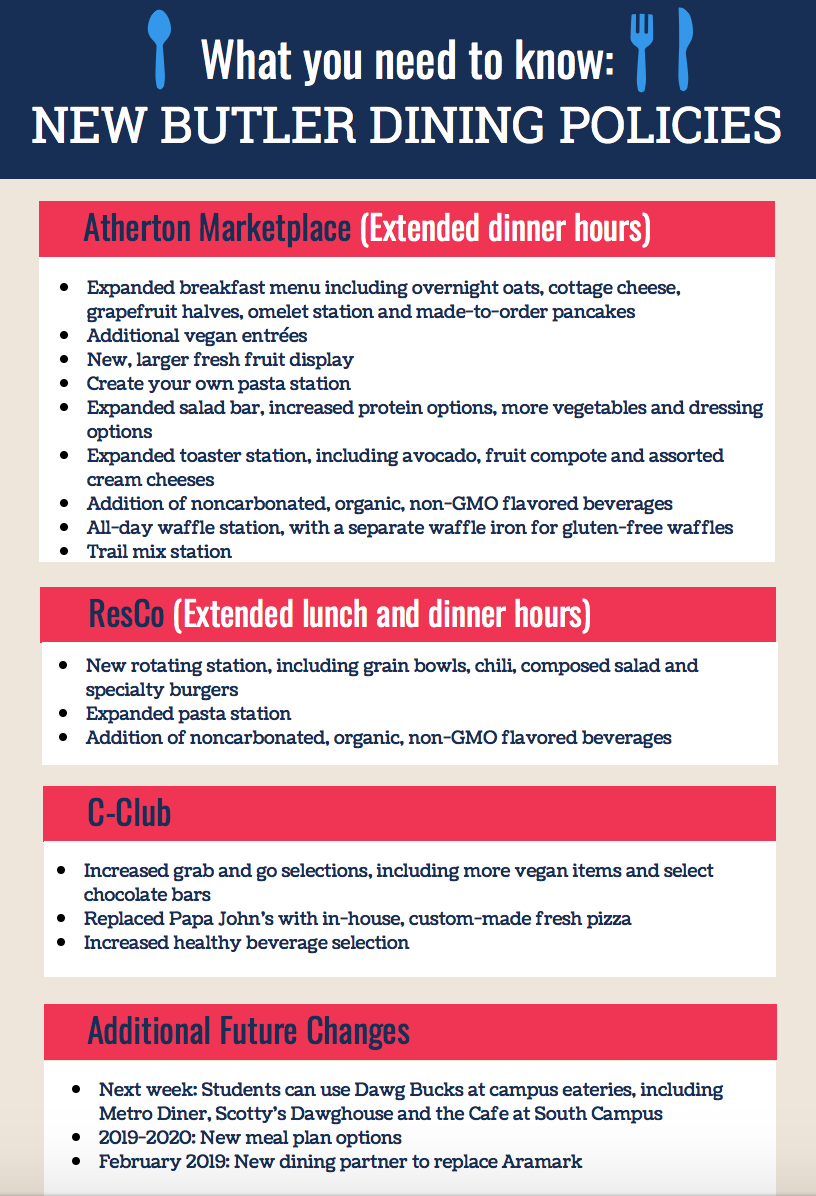 On Aug. 24, Vice President for Student Affairs Frank Ross announced a series of immediate and future changes to Butler’s dining program.