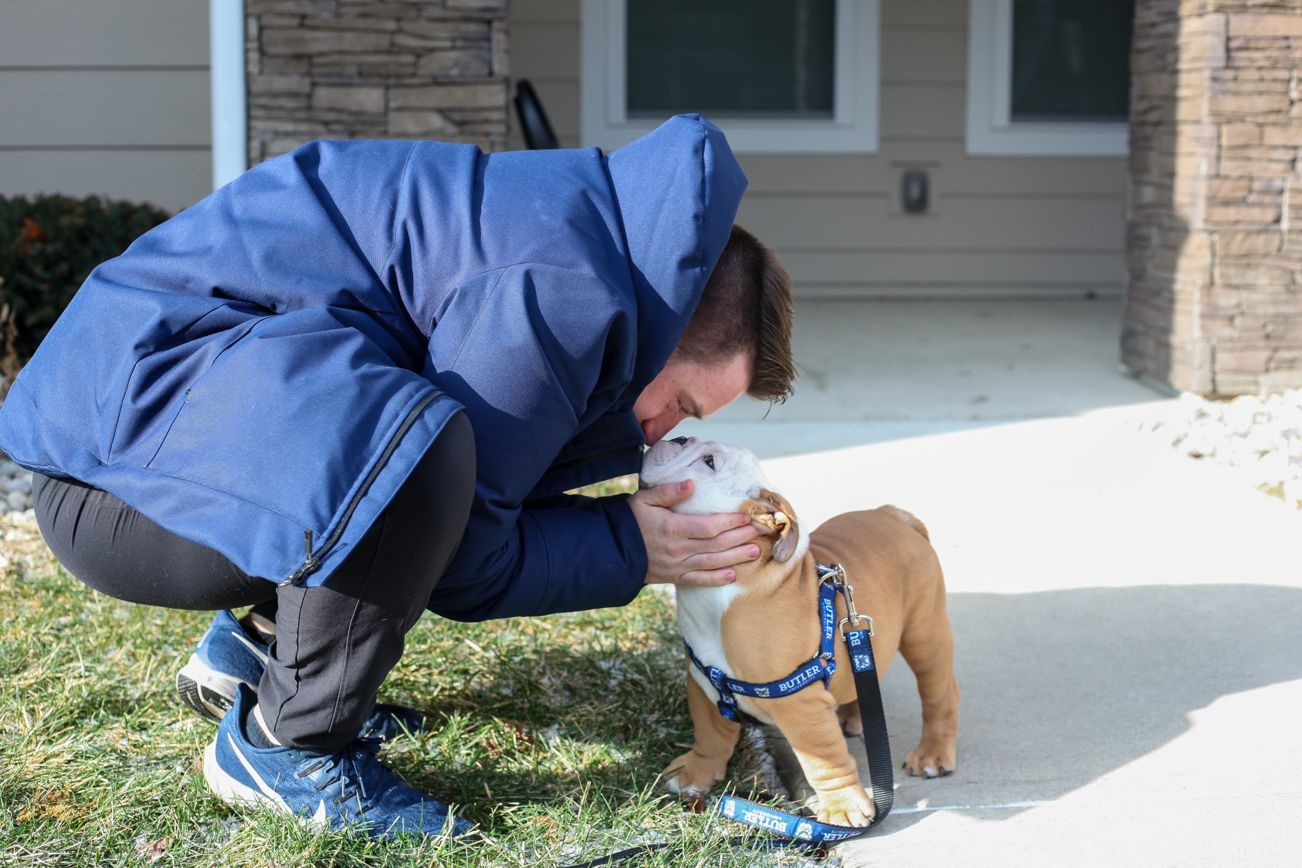 During Blue’s first days at home, Krauss is working with him on potty training, learning what “No” means and continued socialization. One of Krauss’ current tactics is to play the “Butler War Song” loudly in his apartment to get Blue accustomed to hearing it like he soon will at sporting events.