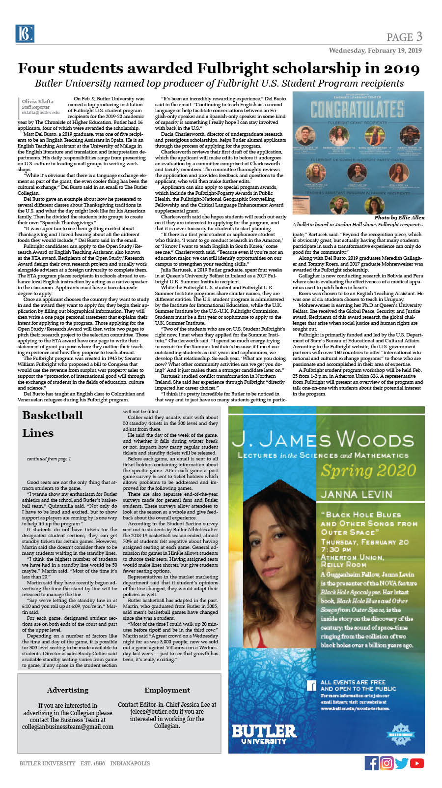 The Butler Collegian website receives about 12,000 views per week, and 600 papers are distributed across Butler University each week. If you are interested in advertising with The Butler Collegian, please visit our advertising page or contact Editor-in-Chief Caleb Denorme (cdenorme@butler.edu).