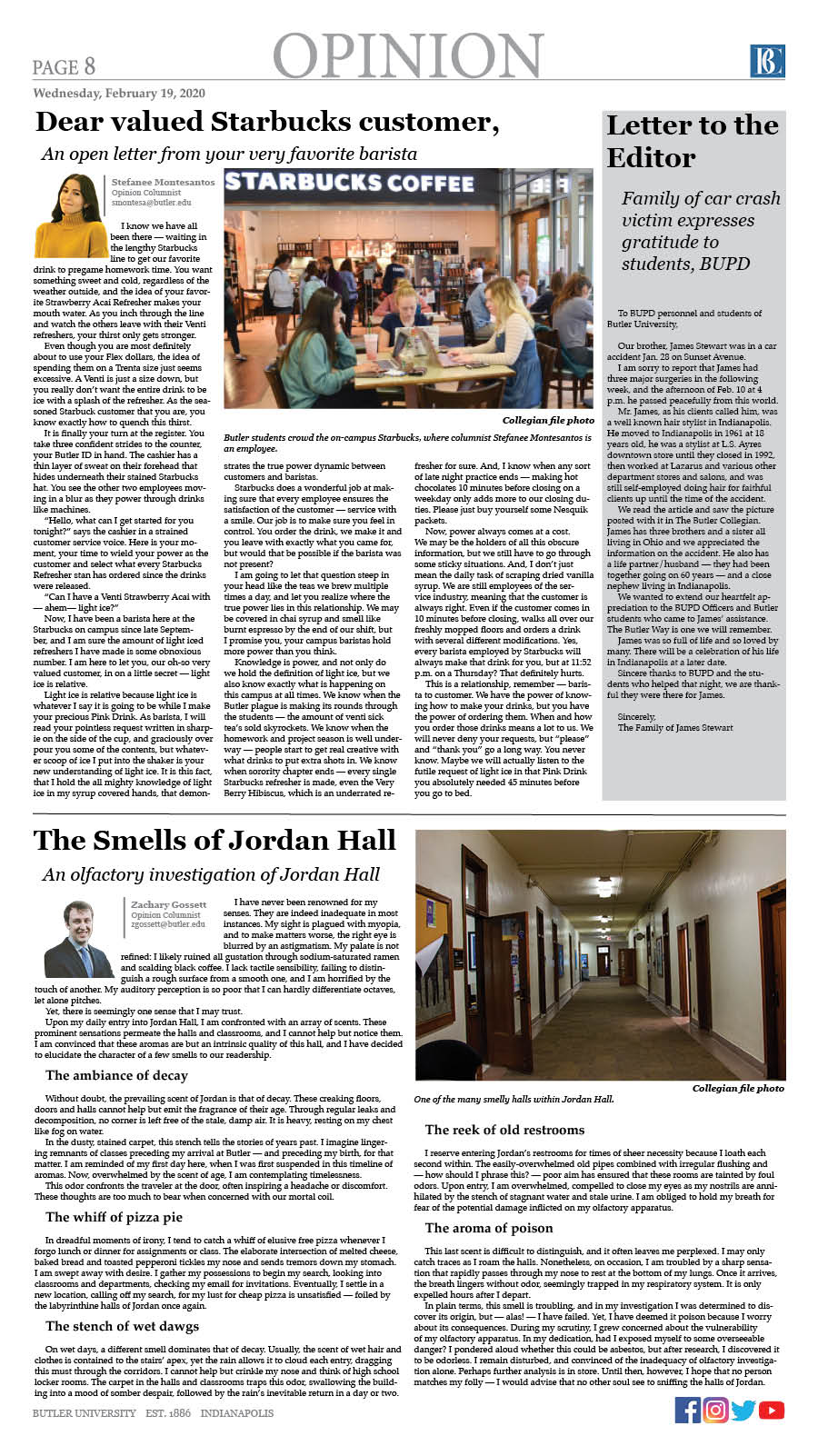 Send us your letters to the email listed below complete with your full name and affiliation with Butler University. Please keep your letter under 500 words. All letters may be edited by The Butler Collegian’s editorial staff for style and grammar. collegian@butler.edu.