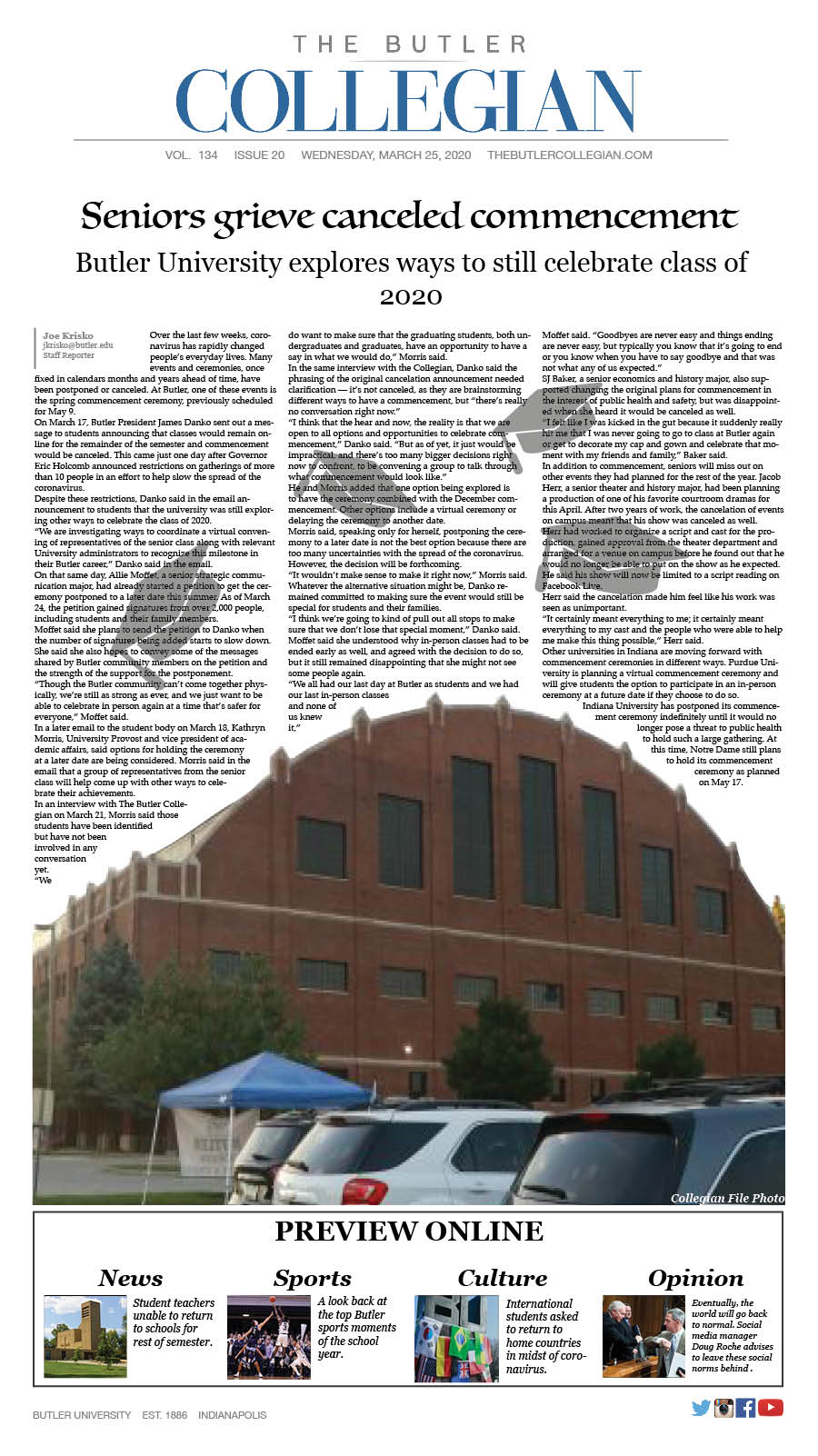 We get it—you’re busy. But the news waits for no one, so stay up-to-date by subscribing to the Collegian’s free e-newsletter. Every Wednesday, you’ll get great coverage of Butler news and events delivered right to your inbox. Click here to sign up.