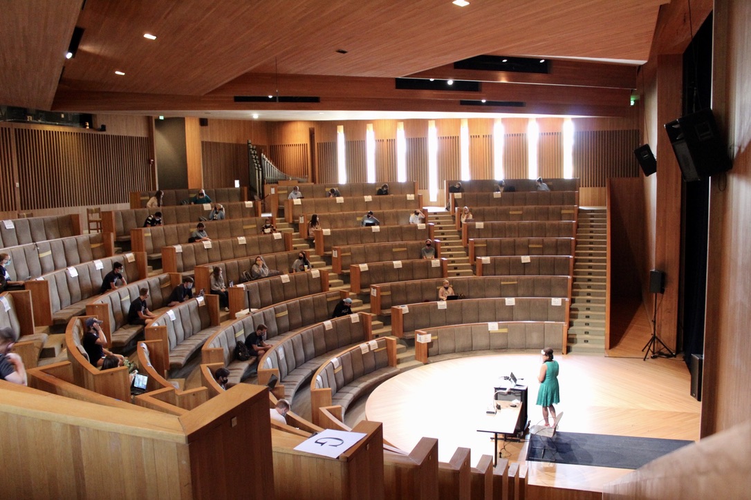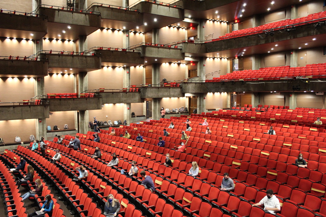 A return to in-person classes at Butler meant faculty needed to re-imagine the traditional classroom setting in order to adequately social distance students. While Clowes Hall cannot host huge crowds for shows or speakers this semester, Butler found a way to continue filling the hall with students — this time for class, rather than a show.