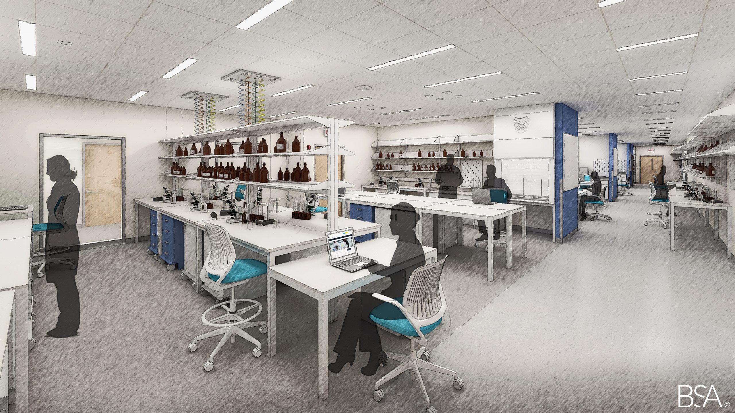 The science complex will also feature new organic chemistry labs. Rendering courtesy of Butler University Office of Advancement.