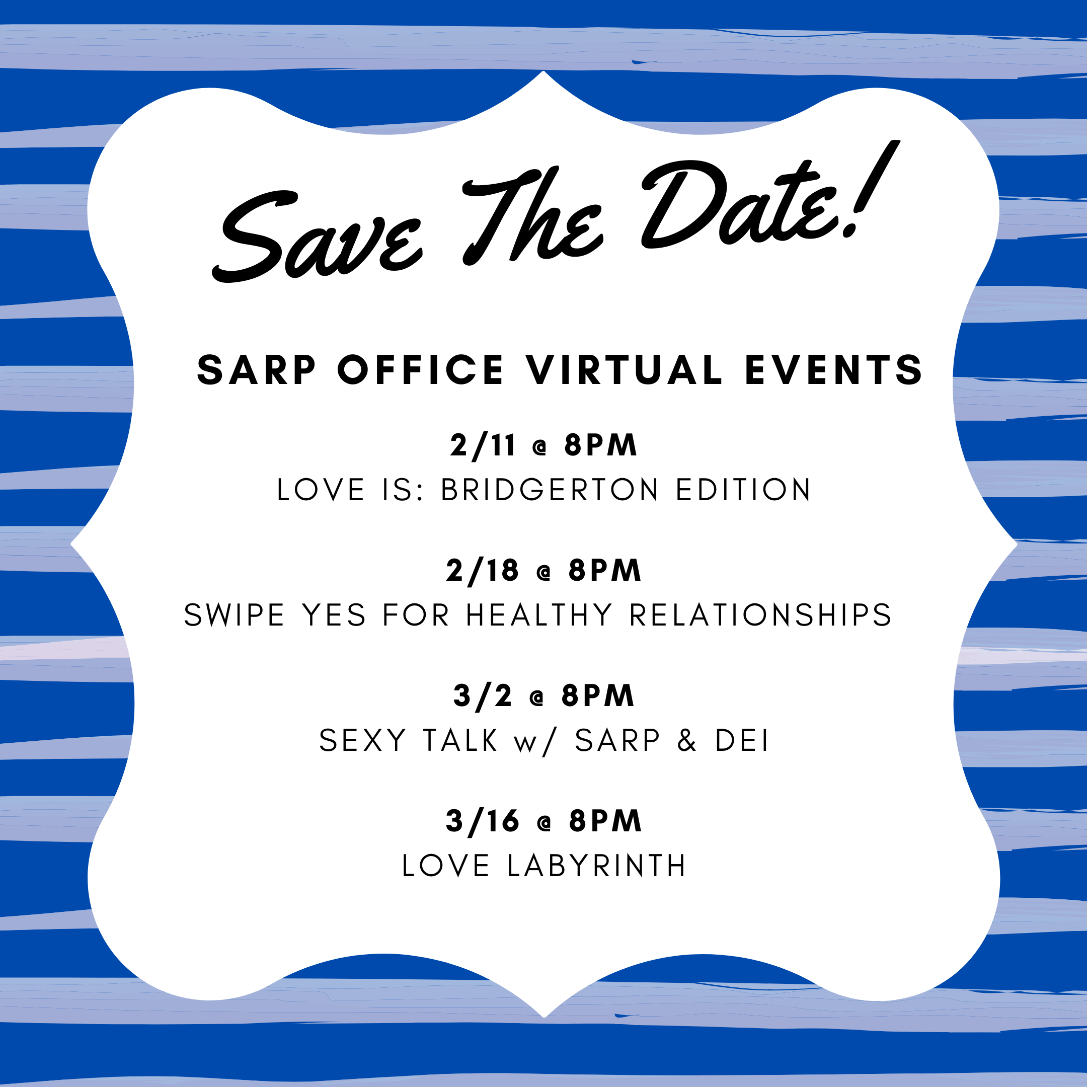 The Butler University Sexual Assault Response and Prevention Office’s schedule of events for February and March.