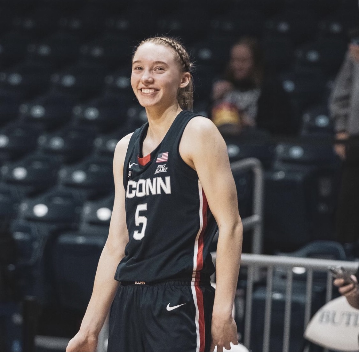 UConn freshman and 2021 AP Player of the Year Paige Bueckers smiles during a game against the Butler’s women’s basketball team on Feb. 27. Photo by Xan Korman.