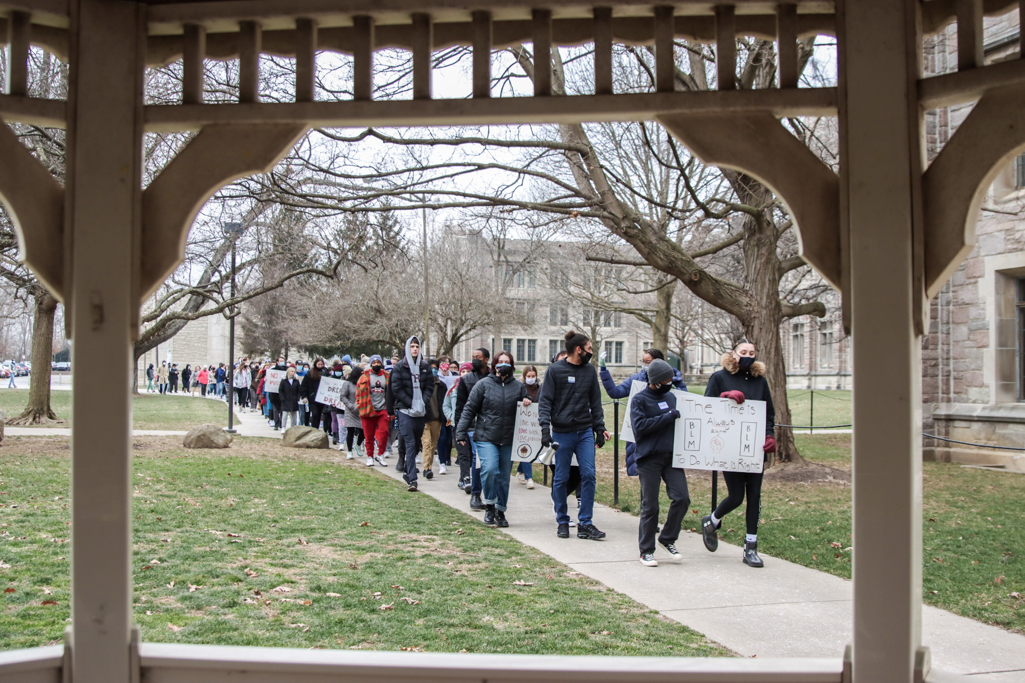 From 3 to 4 p.m., attendees made posters in the Efroymson Diversity Center sporting messages of racial justice. The walk itself started at 4 p.m. outside of Atherton Union, beginning with an introduction by Bust the B.U.B.B.L.E ‘s organizers and a brief speech by Ford. Attendees then made a walk around Butler’s campus with posters in hand. Recordings of MLK Jr.’s speeches played during the walk.
