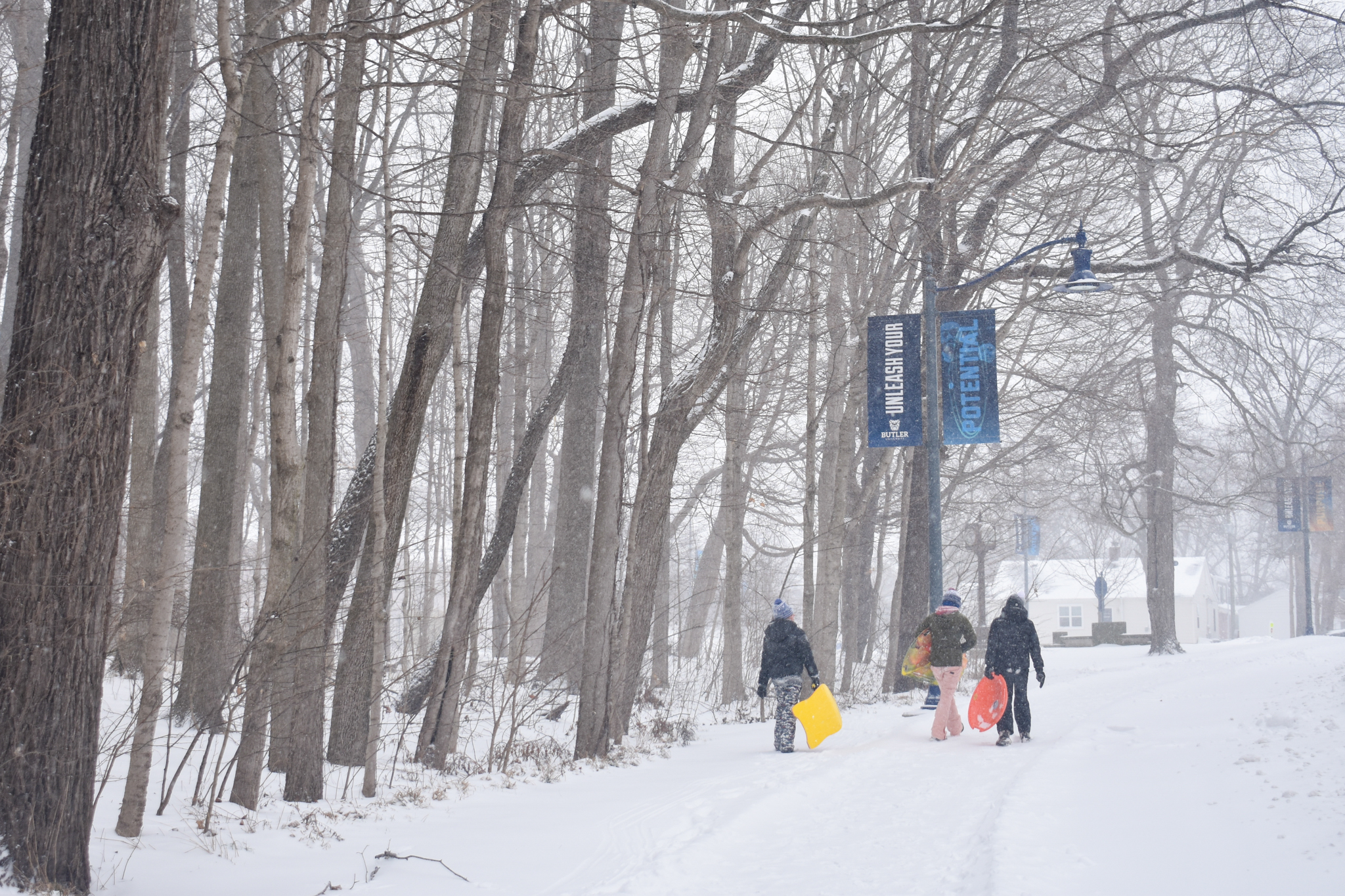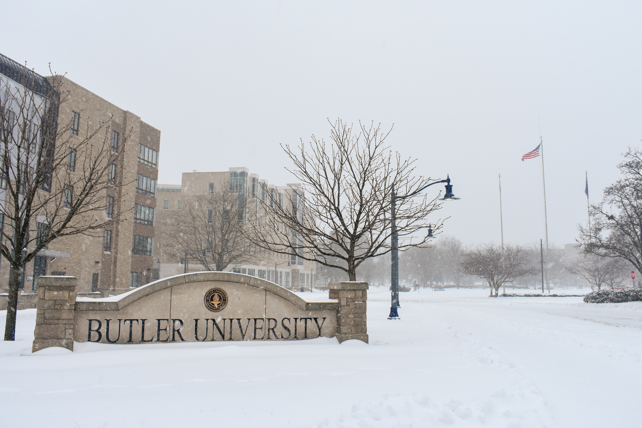 As the snow started to fall, Butler University’s doors started to close and students were notified that campus would be closing down for the day. The first snow day of the year had arrived. Photo by Lauren Jindrich.