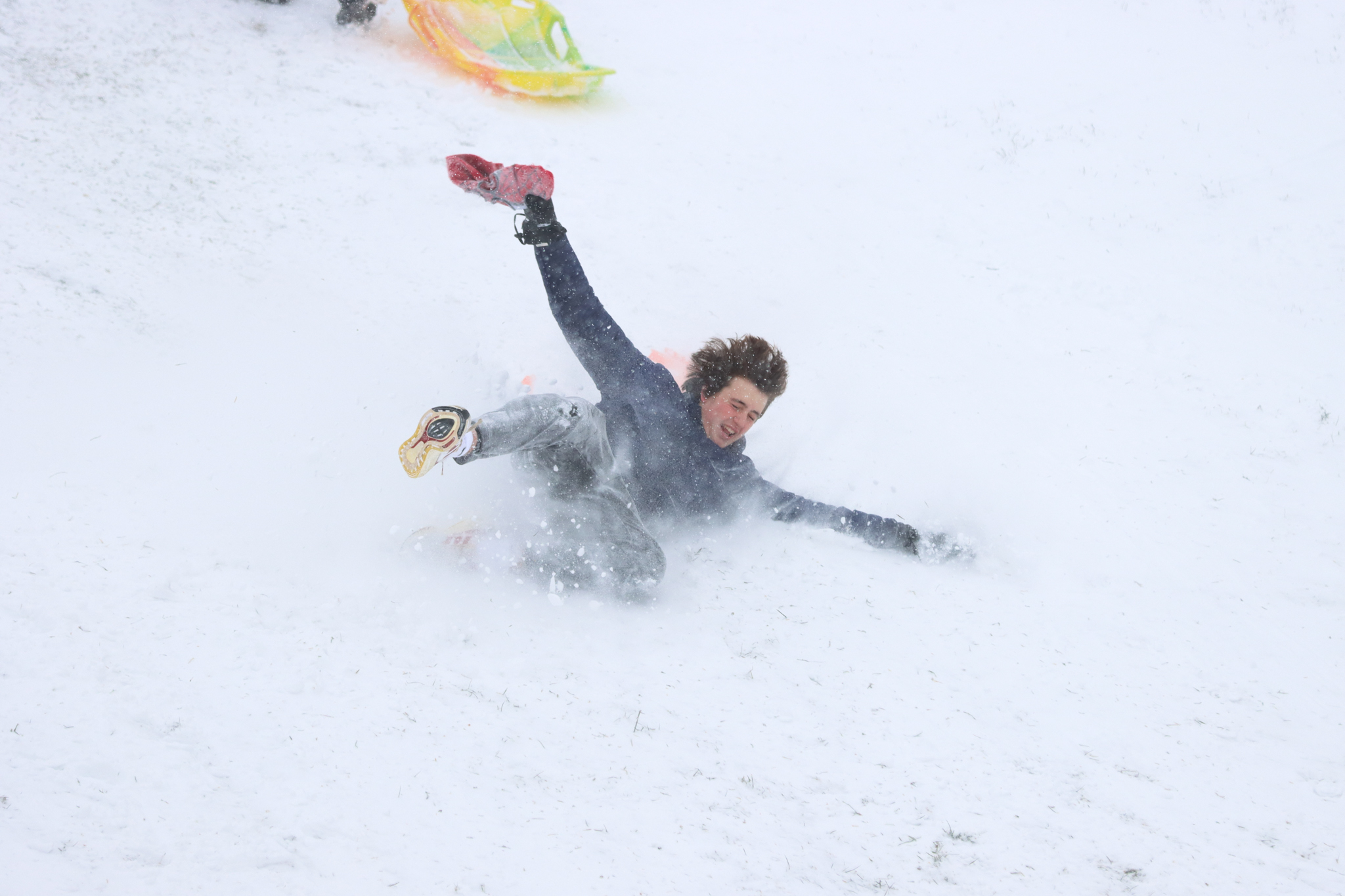 Some daredevils slid down the hill with no sled making it down with a couple of tumbles before a big slash of snow to the face to finish it off at the bottom. Photo by Francie Wilson.