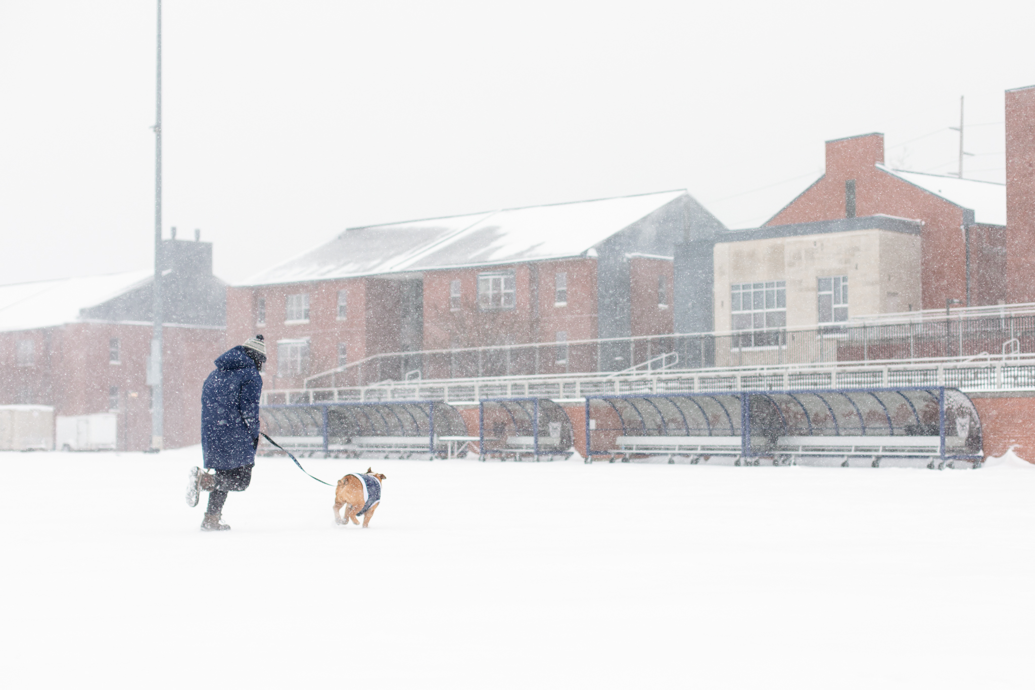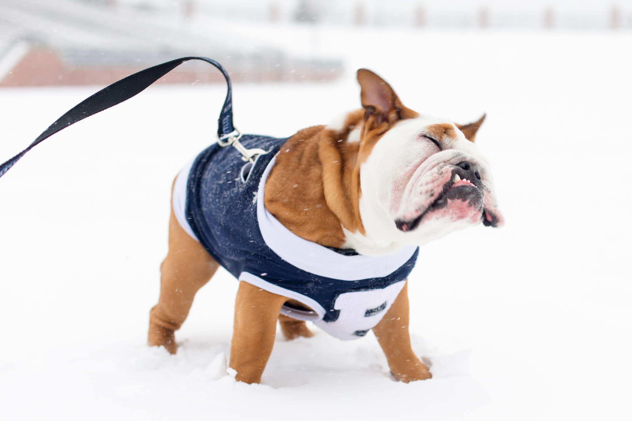 Just like the students before, making it to the bottom meant Blue would be covered in snow head to paw. Some quick thinking and quick shaking got all the snow off ready for round two. Photo by Lauren Hough.