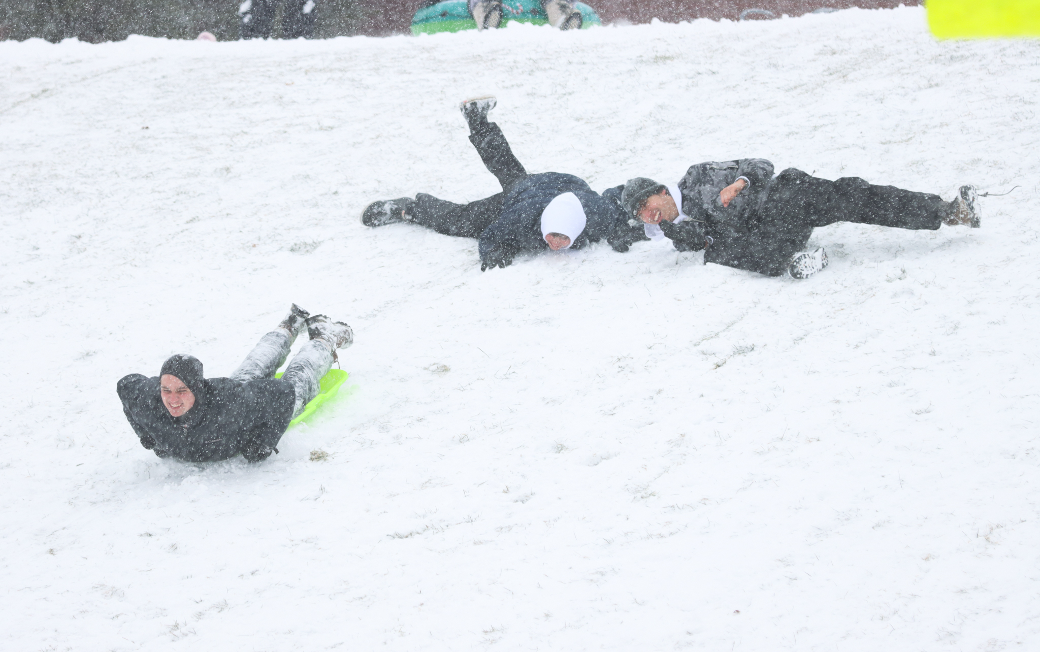 Grabbing whatever they could, students headed to the only place they knew that would provide the best sledding experience, the Butler University Selick Bowl. Photo by Lauren Jindrich.