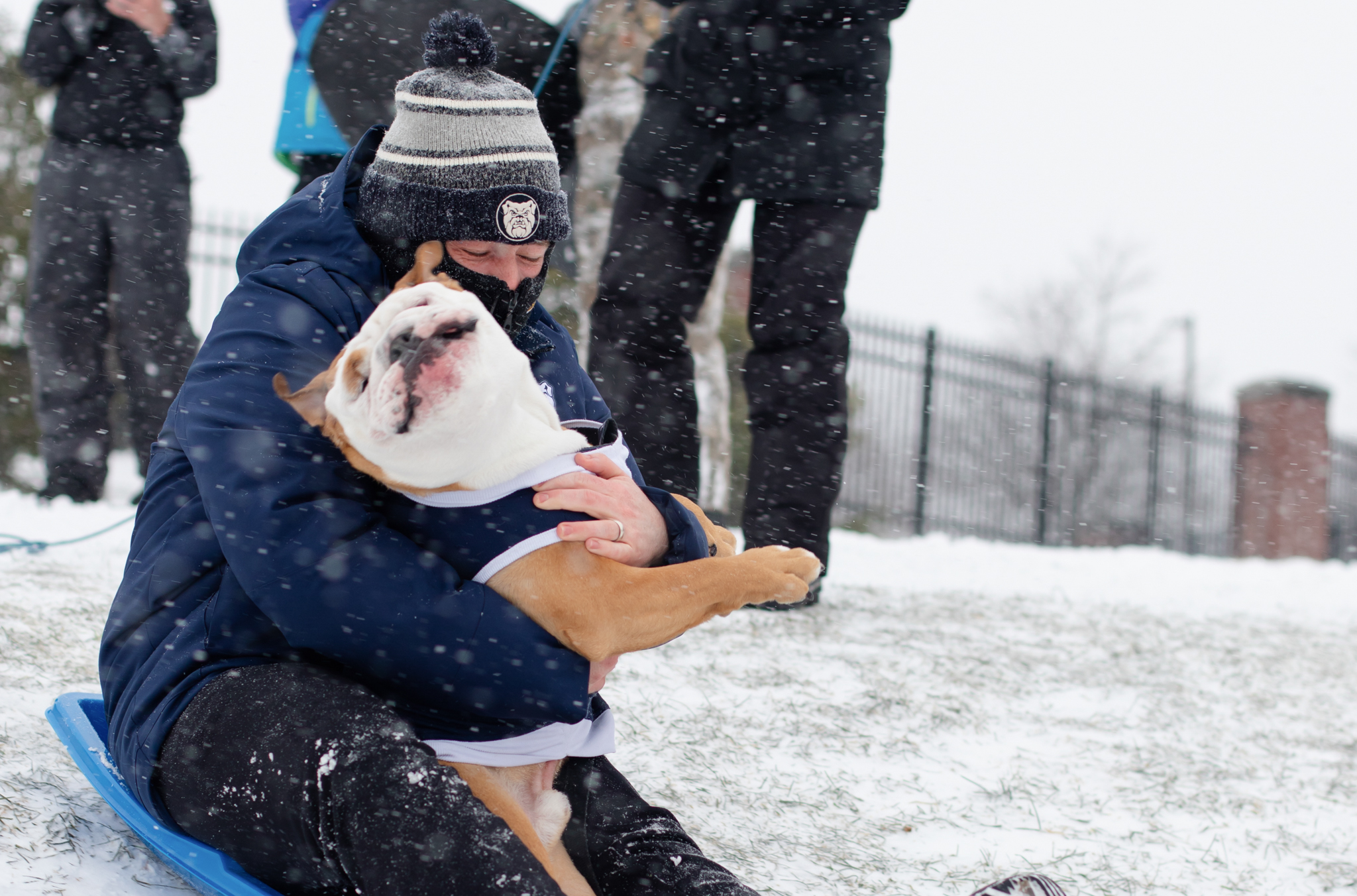 Even our very own Butler Blue joined in on the sledding fun and took his turn down the side of the Selick Bowl. Photo by Lauren Hough.