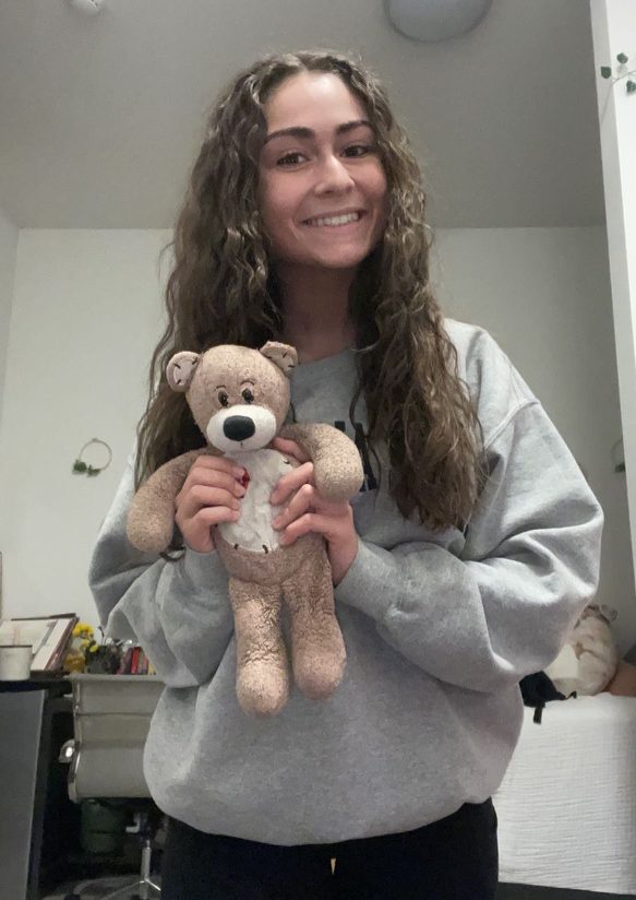 Jade Eilers received her stuffed bear, Leakum, on Valentine’s Day in 2006. She still holds Leakum close now that she’s in college. Photo courtesy of Jade Eilers.