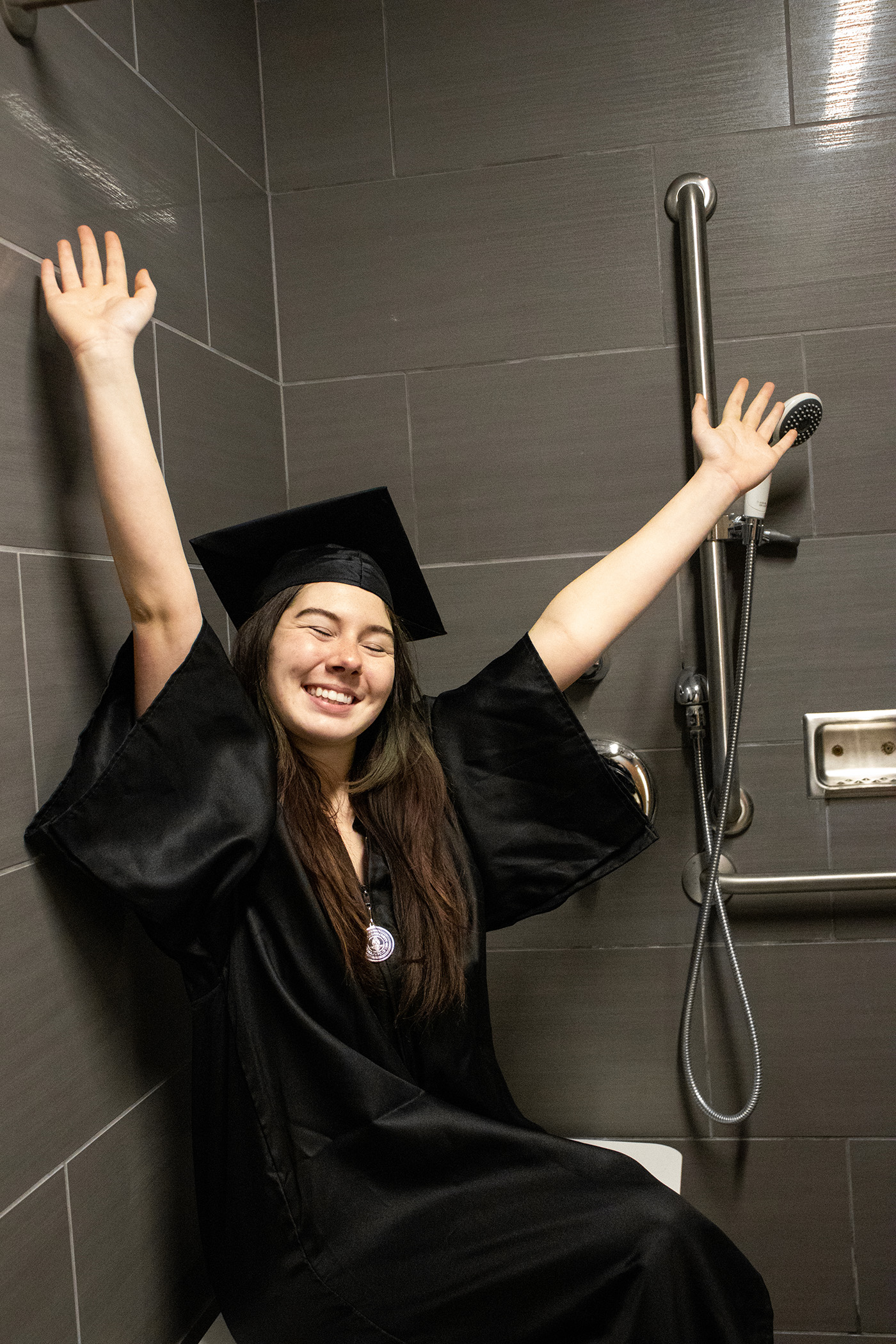 Thus, a grad photo in the LSB showers truly encapsulates the capitalism-fueled greed of Butler; the ever-heightening cost of tuition, the overpriced everything, all in exchange for silly little things like showers by the classroom.