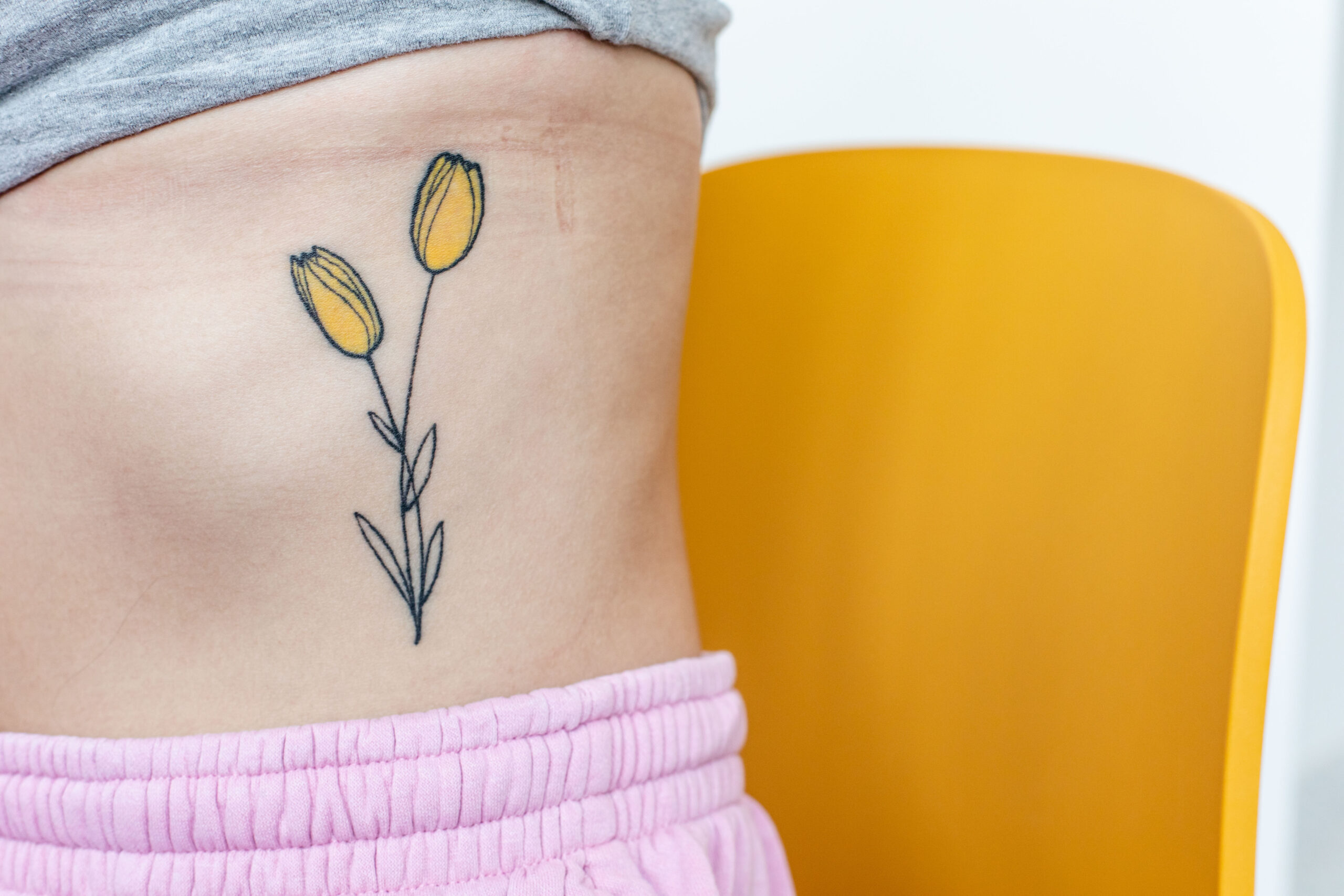 GF: So the idea of the yellow tulips — the meaning is the same as a semicolon [tattoo], representing a struggle in the past like depression and getting past suicidal ideation and all of that. I just couldn’t find a semicolon design that I loved, and then I learned about the yellow tulip meaning, and I was like, “That’s what I want next.”