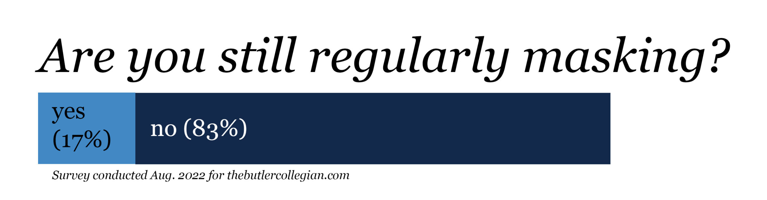 The Butler number was almost half that national number; 19 of 112 respondents — 17% of answers — said they do still wear a mask regularly while 93 people — 83% of answers — do not.
