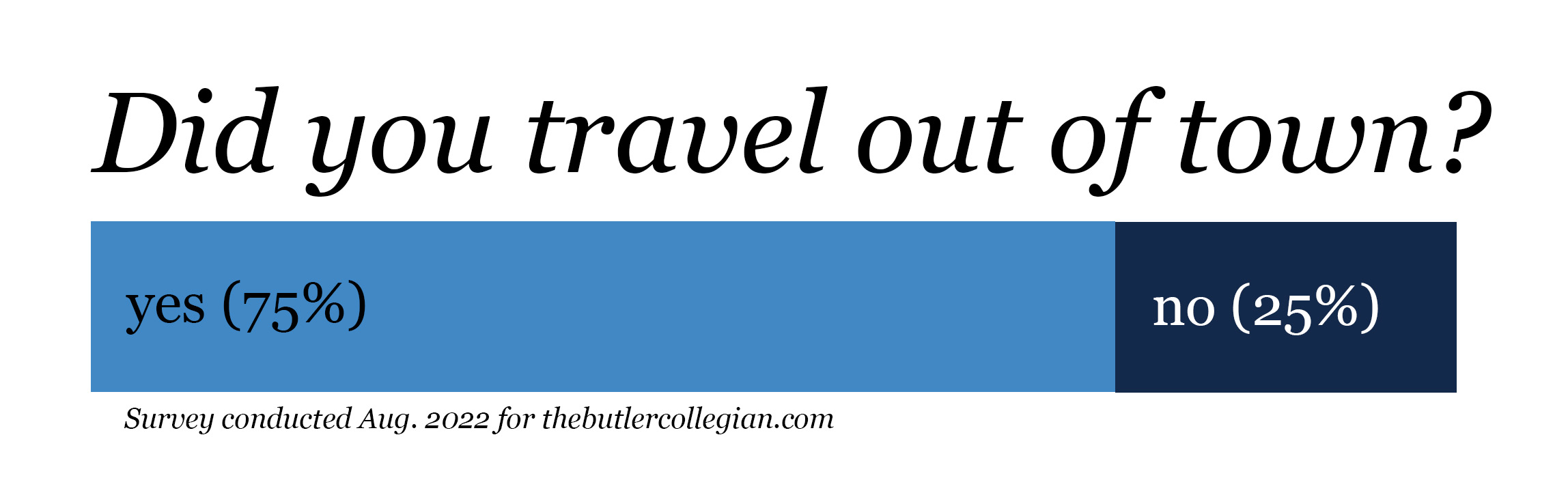 As for the 110 Butler respondents, 82 users — 75% of answers — said yes, they did travel out of town. 28 users — 25% of answers — said no.