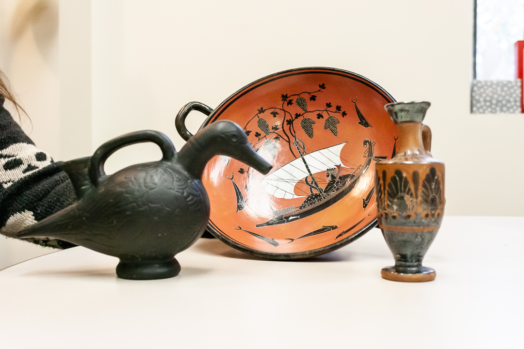 DLK: Initially, we started with a Presidential Innovation Grant, and we wanted to use that to [solely] buy reproductions associated with the ancient Mediterranean world for engagement in the classroom. We did not want [authentic] artifacts. As an archaeologist, it’s really important to me from an ethical perspective to not engage in a market for antiquities.