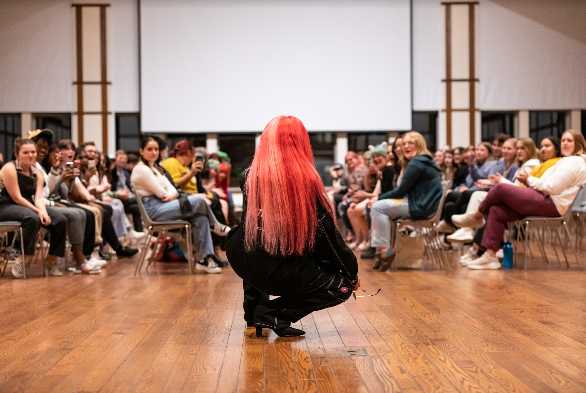 The campus community at Butler is more dedicated to pride and inclusivity than ever, with the national rises in homophobic and transphobic hate crimes and legislation in recent years. Emcee Virginia Slim called attention to such legislation during the show by calling for students to exercise their right to vote in upcoming elections, as well as giving due credit to Black trans drag performers and activists who paved the way for shows like Saturday’s.