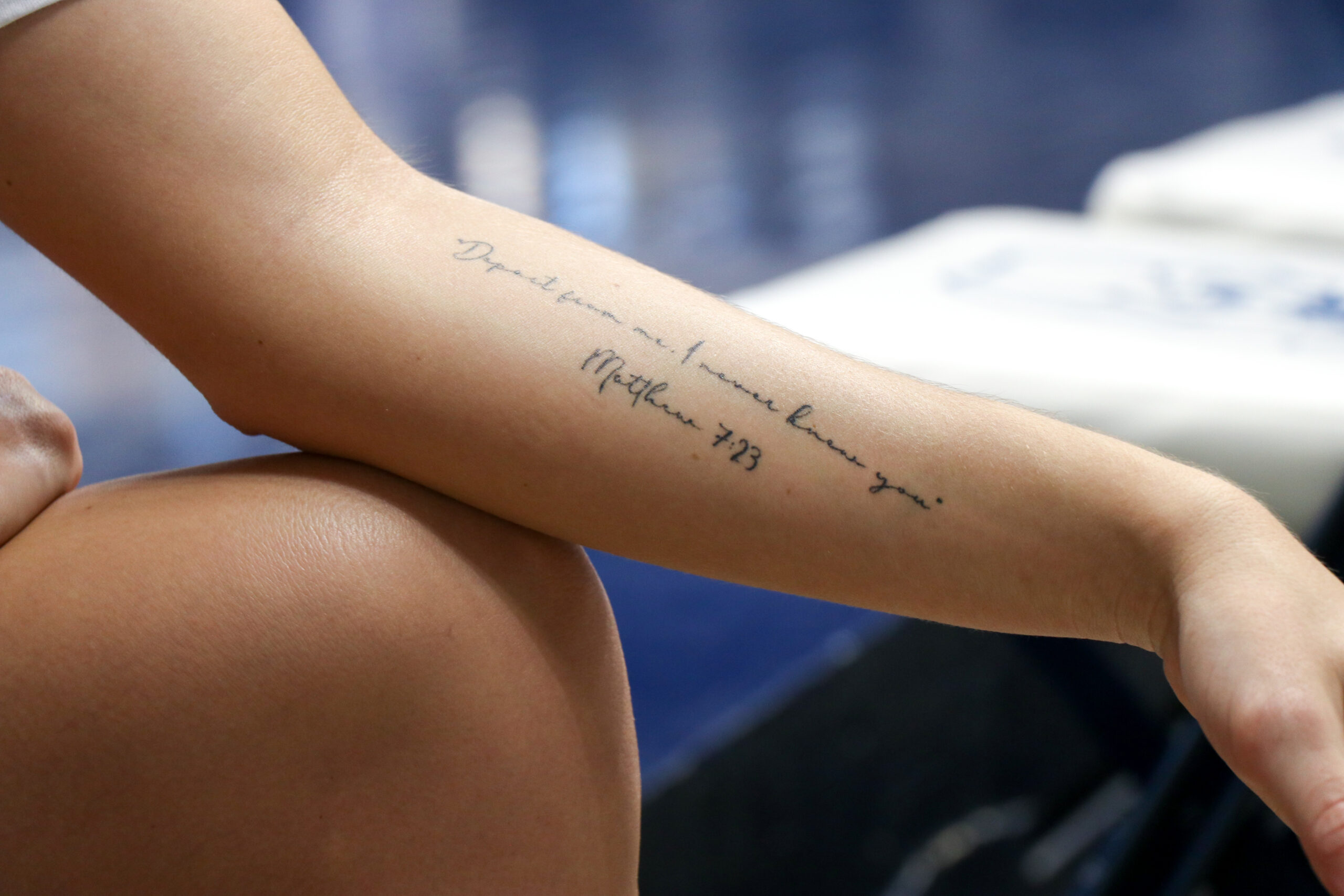 TW: Bring a buddy for moral support. Every time I went, I had my mom or one of my teammates. I think that builds the connection you have to that tattoo.
