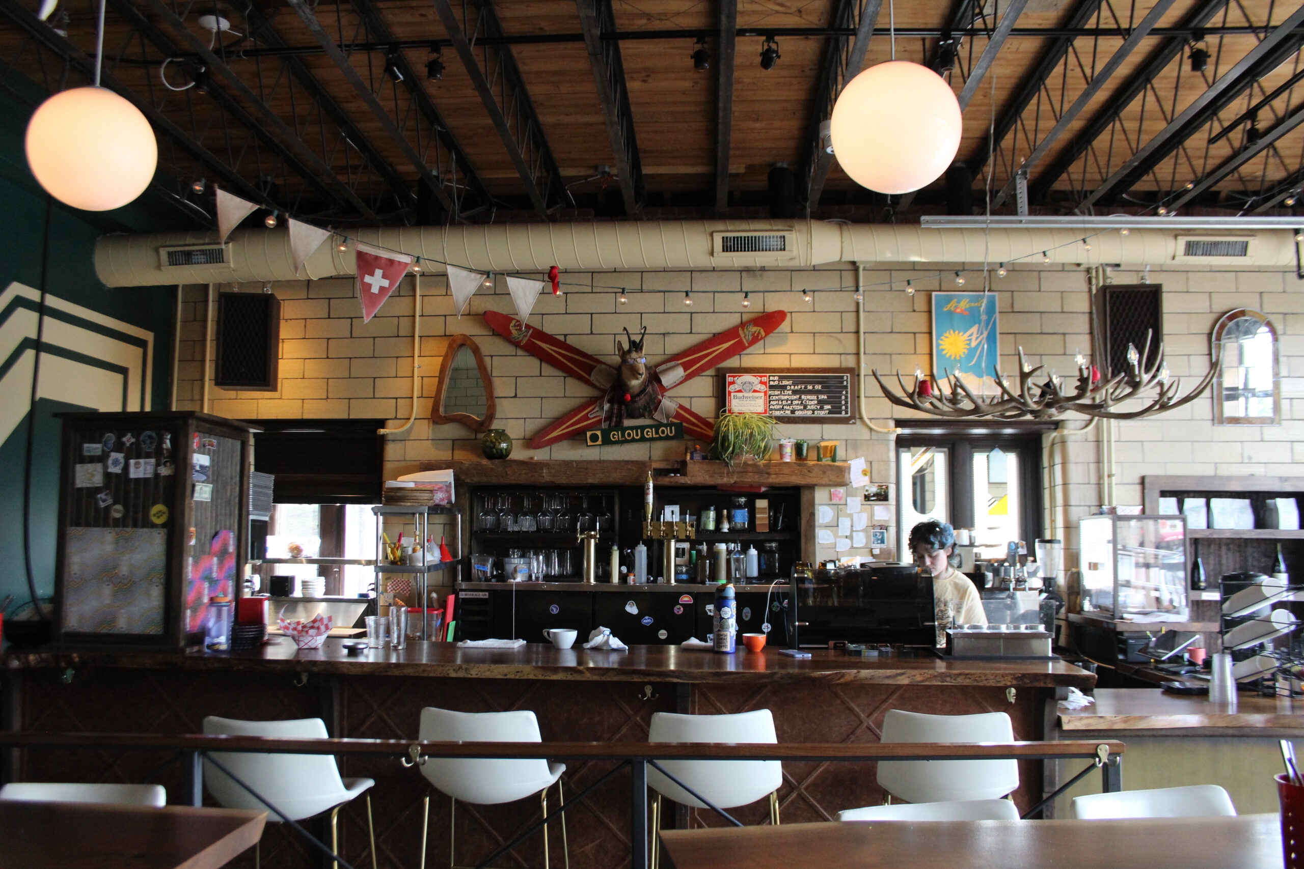 Chalet’s rustic bar adds a nice touch to the cozy and welcoming vibe of the coffee shop. Photo by George Beblo.