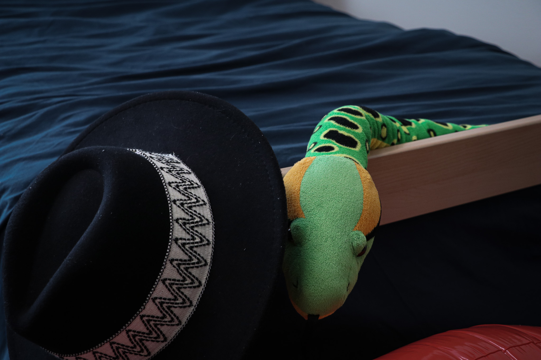 As this is Byrnes’ first full year away from home, he found it important to bring a snake plushie from him named “Snakester Viginnis.” He sits on Byrnes’ bed, creating the feel of walking into his room at home.