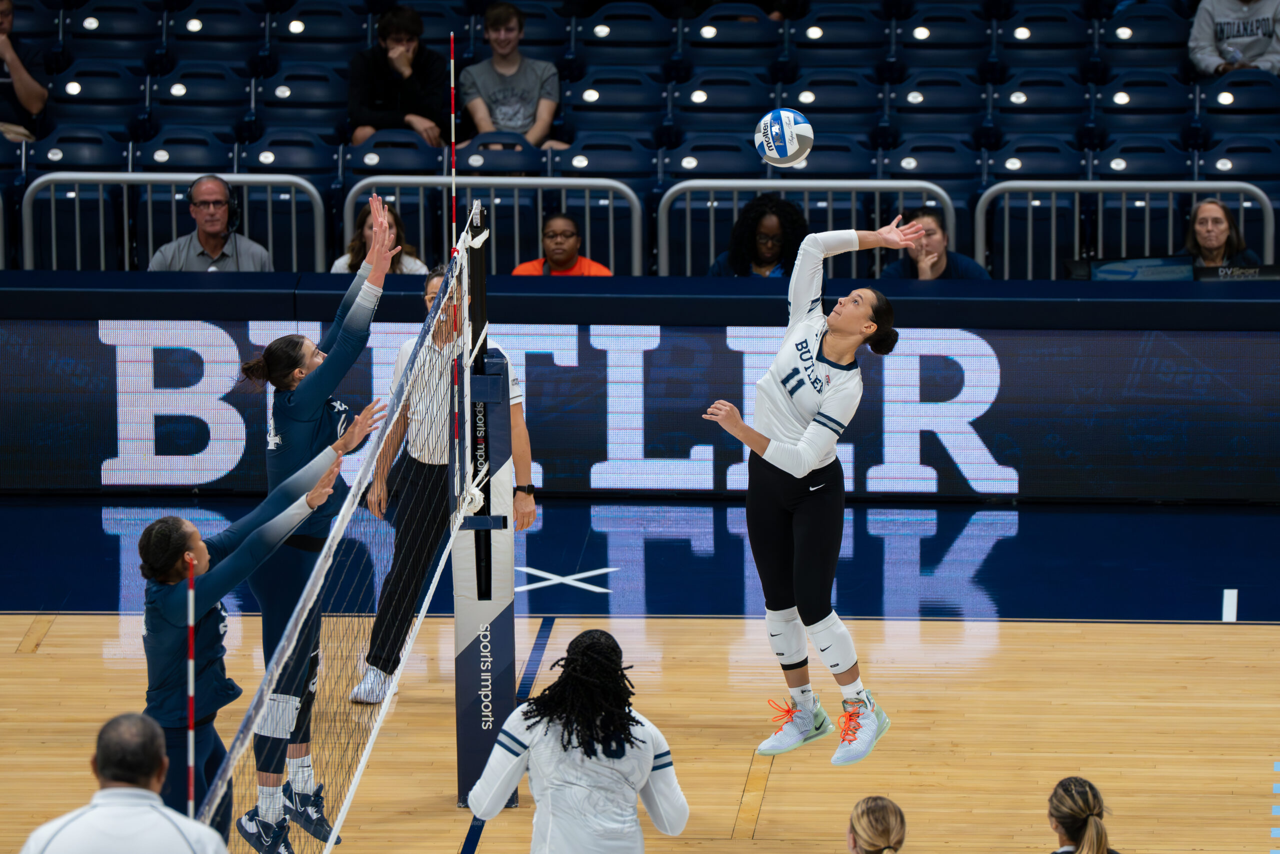 First-year outside hitter Elise Ward had three kills against Xavier and a team high 10 kills against Creighton. Photo by Andrew Buckley.