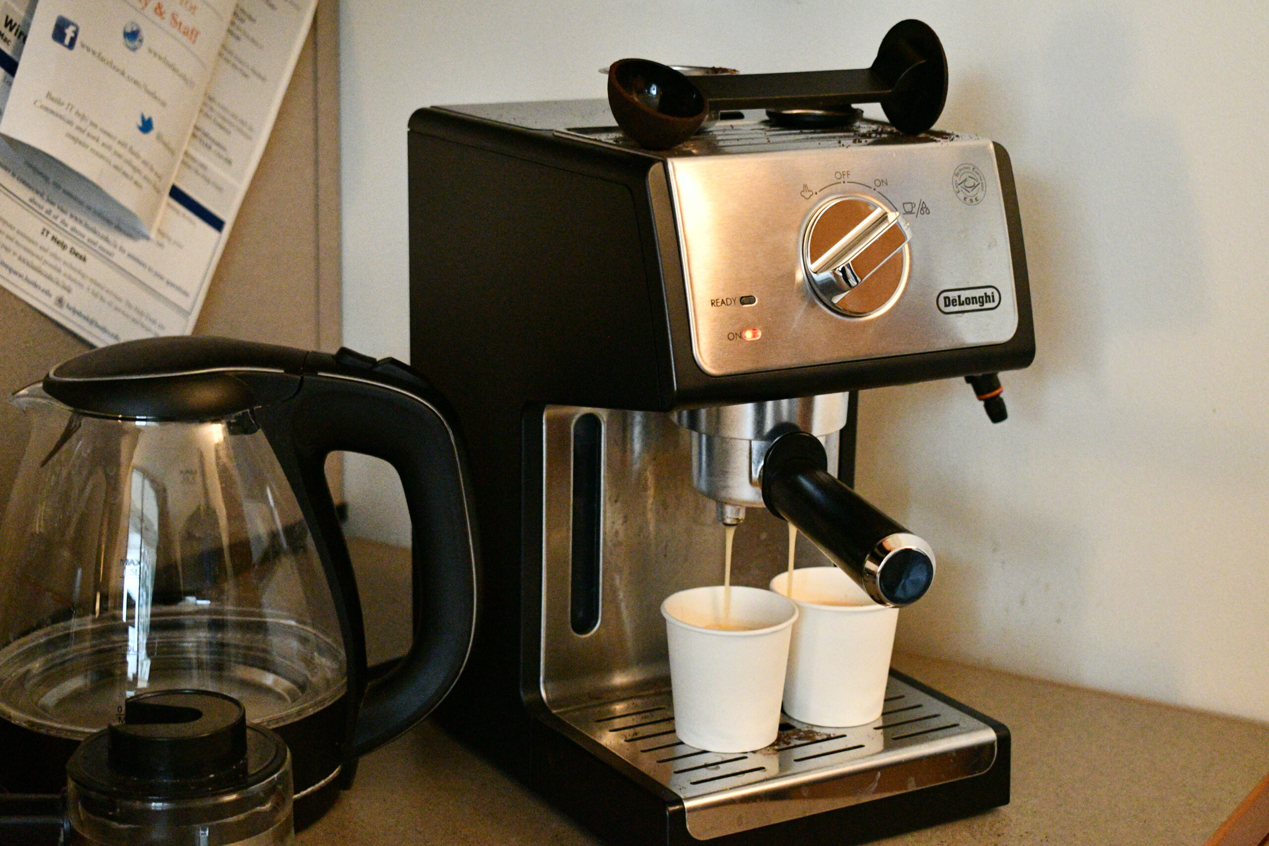 The famous espresso machine in White’s office. Photo by Elle Rotter