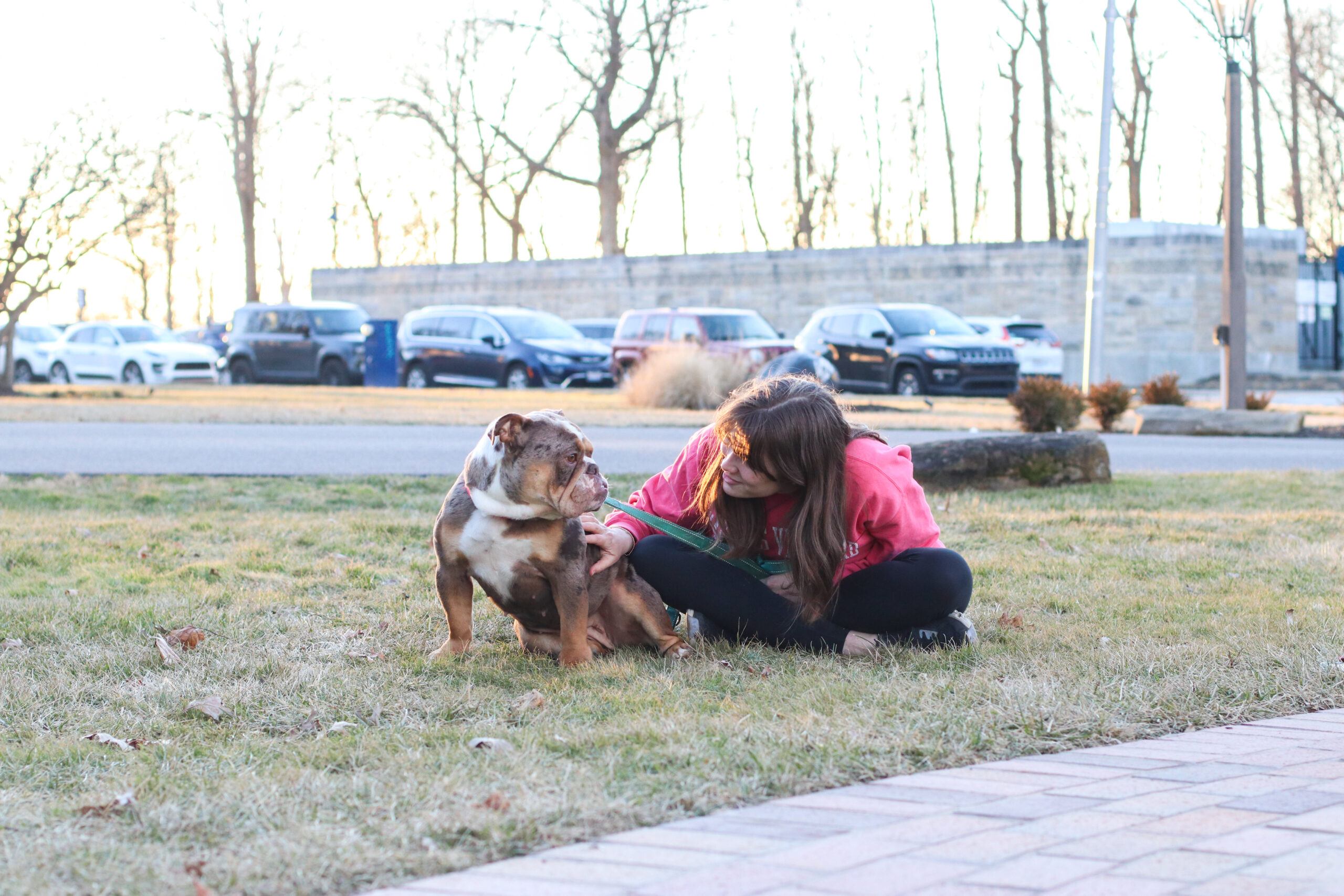 Sophomore marketing major Caroline Blake and her pet bulldog Georgia enjoy time outside together. Photo by Grace Hensley