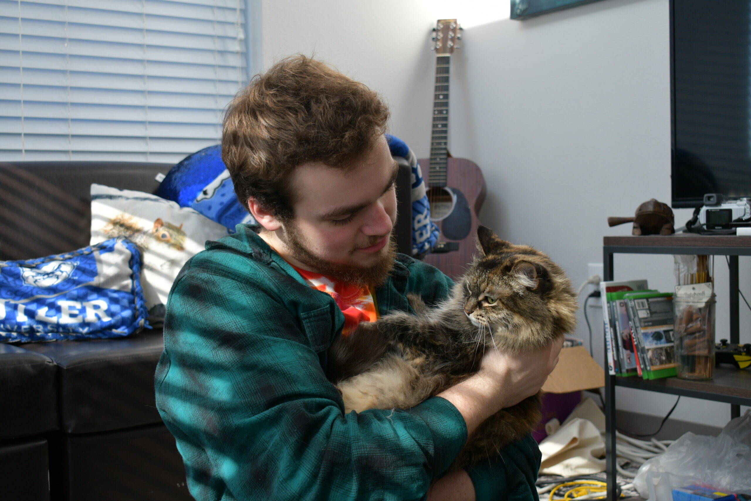 McLean Carter, a sophomore arts administration major, brought his family cat, Bella, to Butler once he registered her as an ESA.