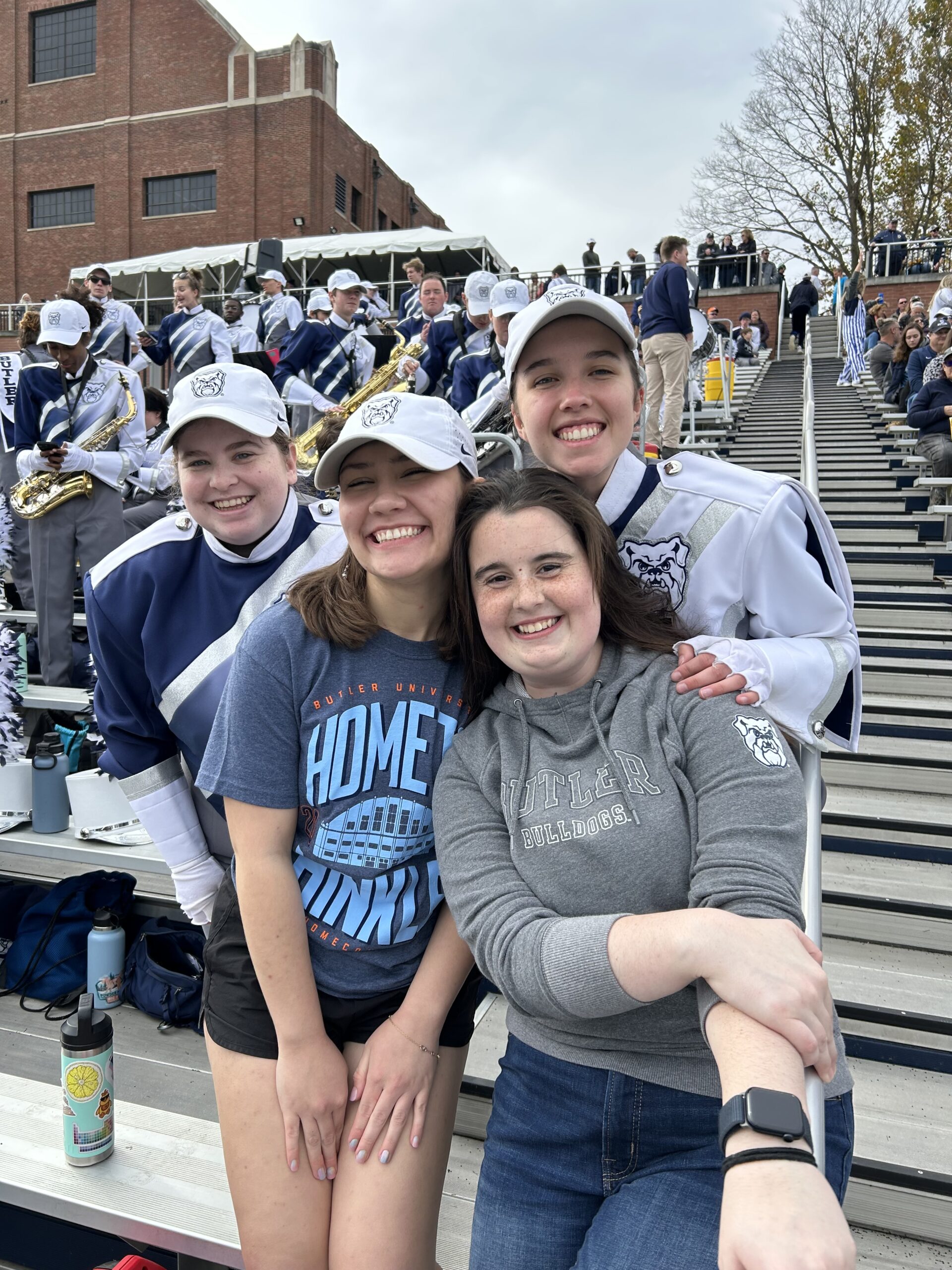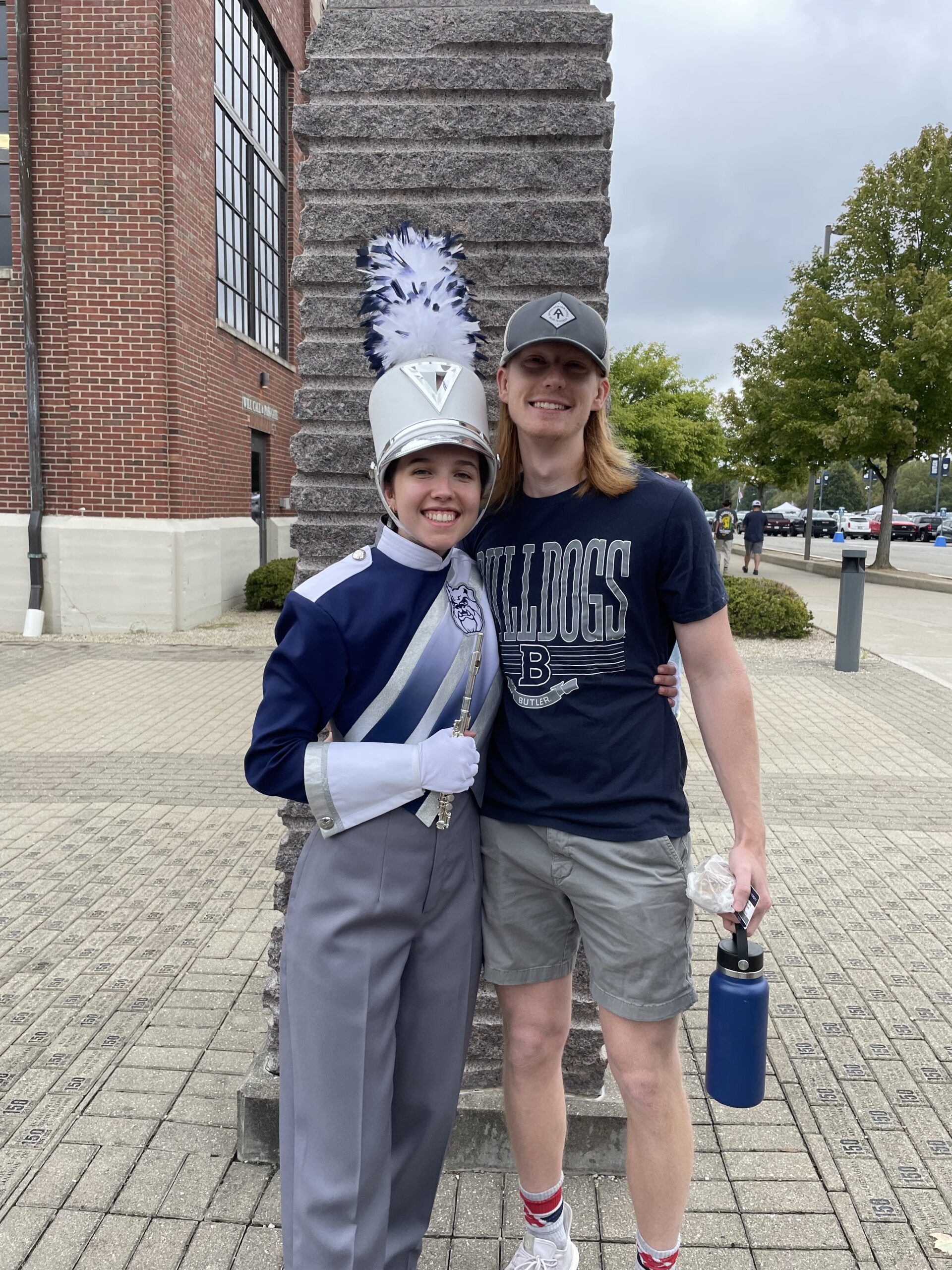 Harrison and I started dating after being friends in our high school marching band; he plays the trumpet, and I play the piccolo. After two years of long distance at separate schools with COVID in the mix, full of many long drives back and forth between Indy and Milwaukee and hours of FaceTime calls, he transferred to join me here. We are both in the Butler University Basketball Band now and have been together for four years this February! — JULIA ROWE, JUNIOR ECONOMICS MAJOR