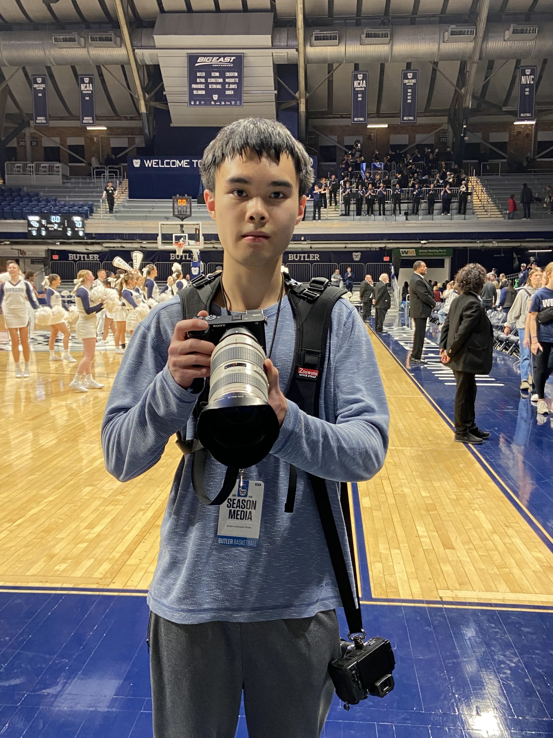 Me with my cameras at the Dec. 15, 2023 Butler basketball game versus Saginaw Valley State. Photo by Elle Rotter