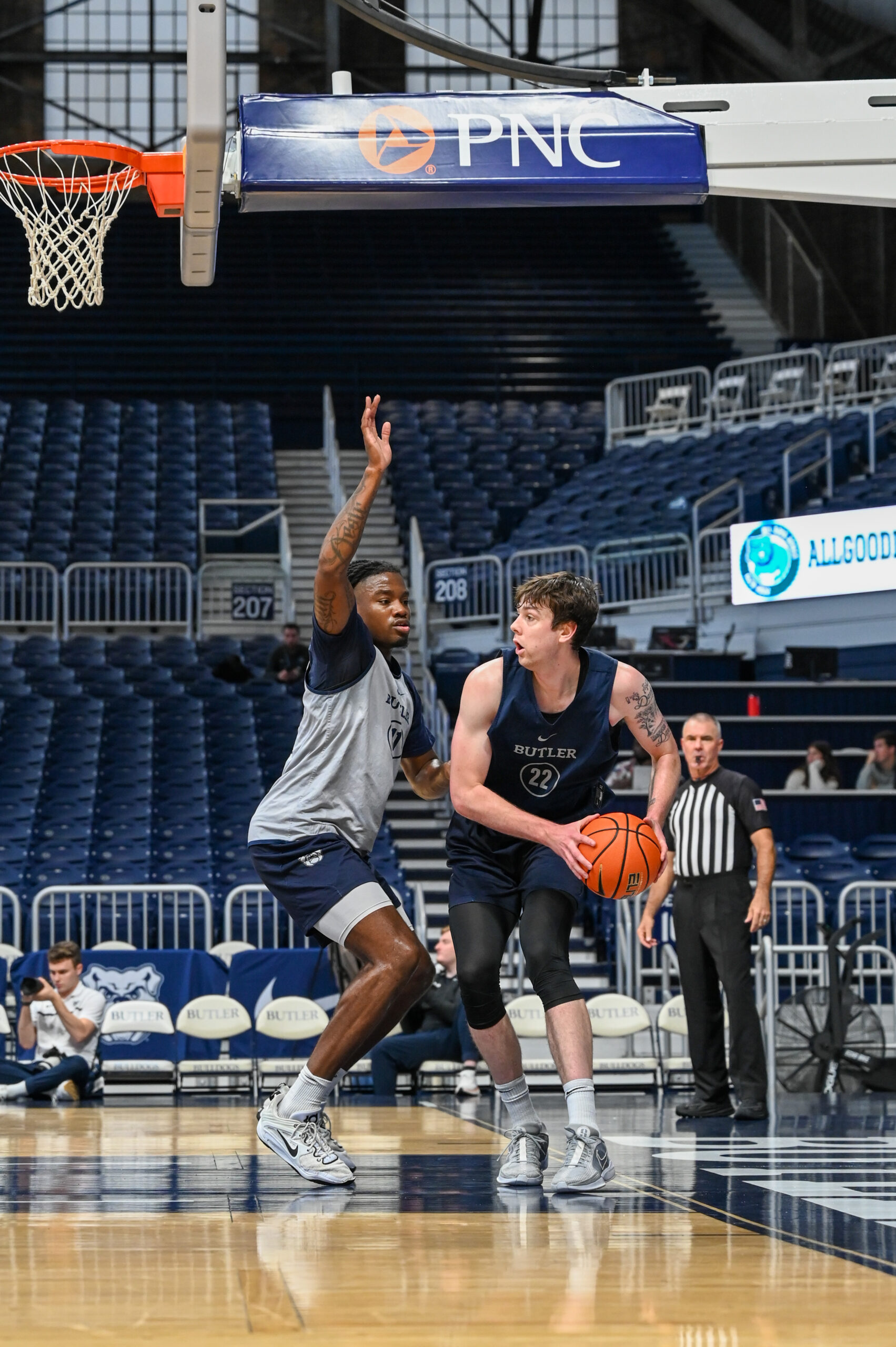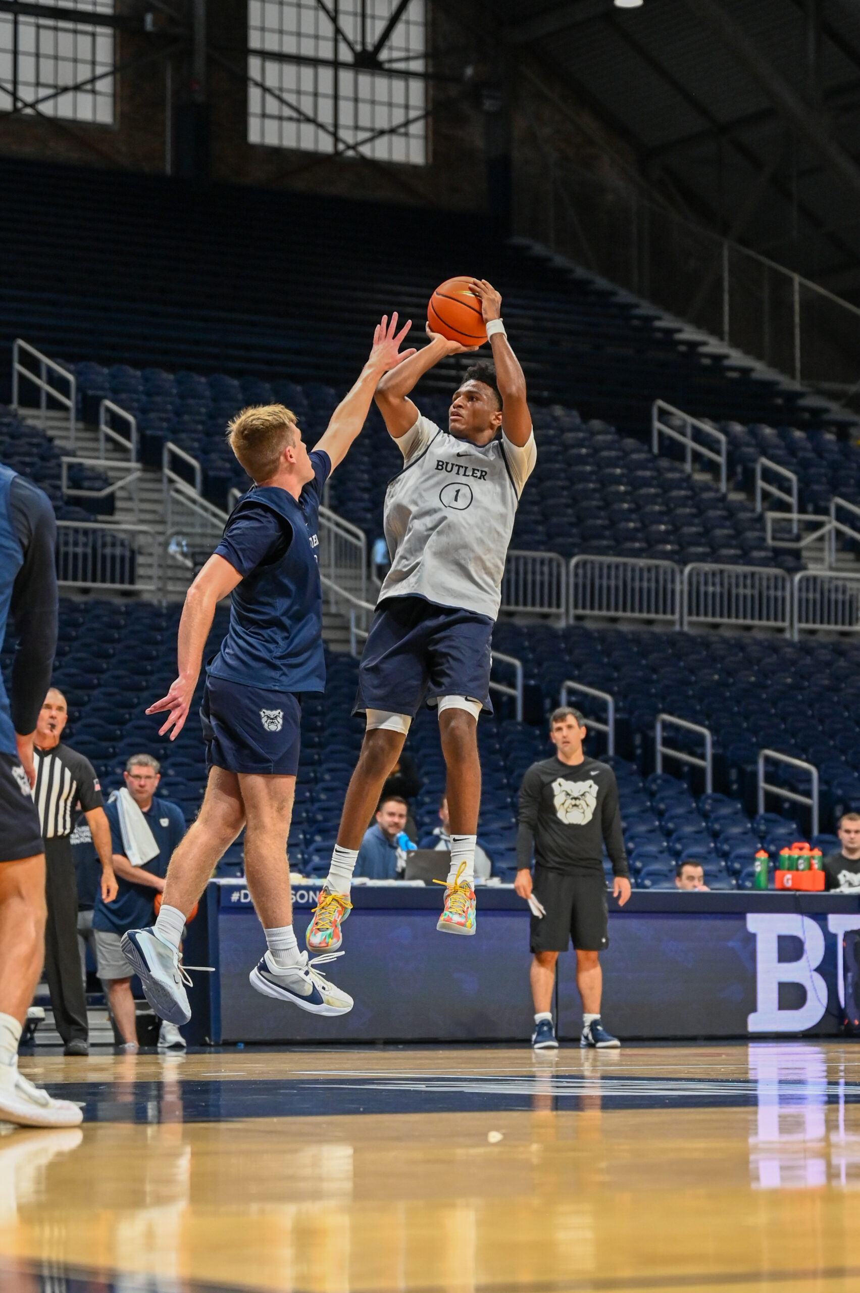 Butler Athletics opened up the doors of Hinkle Fieldhouse for fans to attend the men’s basketball practice on Sept. 28. Spectators watched as the Dawgs went through a routine practice a month before the season began. Even Indiana Fever star Caitlin Clark joined spectators Hinkle to watch as the Bulldogs took the floor.
