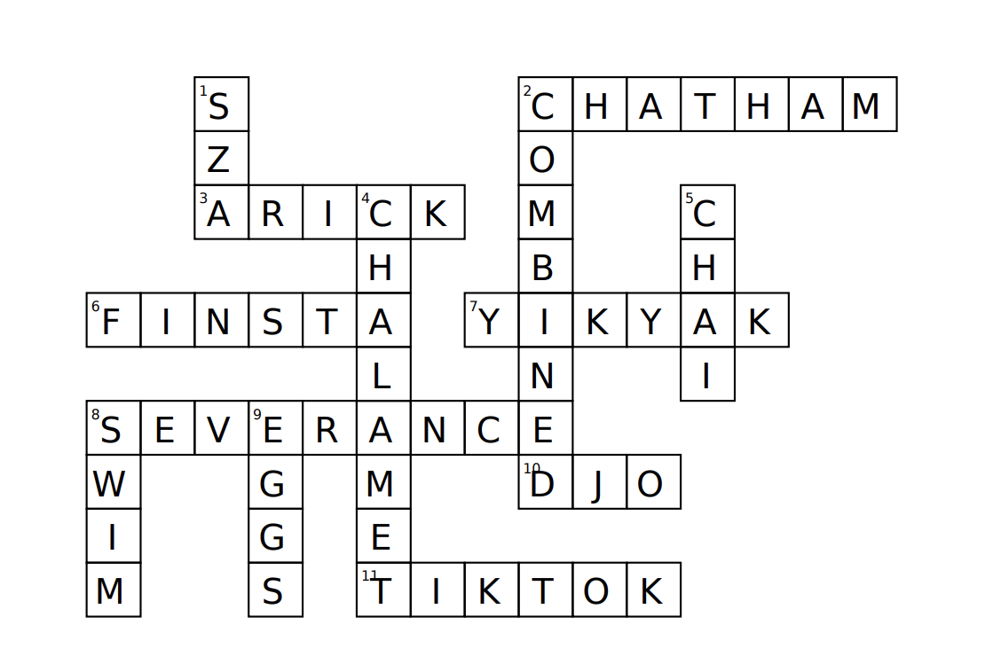 Try out the crossword by picking up the newspaper from around campus, printing it out, or drawing on the image using your device, then scroll down to the bottom of this page for the answers.