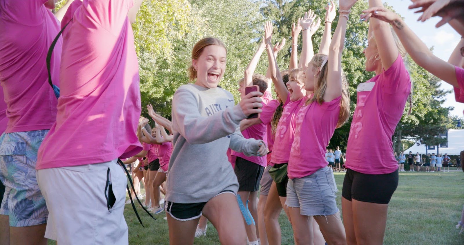 An excited first-year student proudly runs to their new home. Photo by Jonathan Wang.